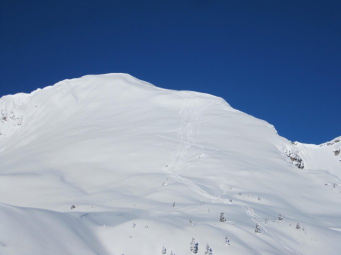 Sart um 8:45 Uhr bei -24°C, traumhafter Powder, blauer Himmel und viel Sonne - ein Traumtag.