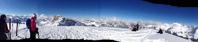 Auf dem Gipfel windstill. Ca. 50 Personen am Berg.