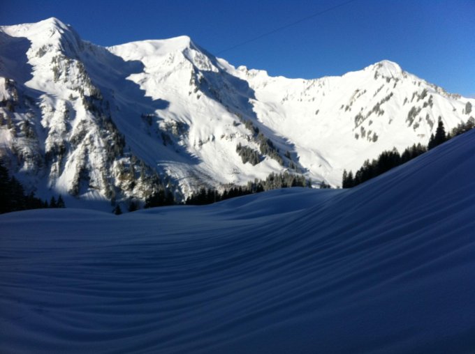 Ich wollte zuerst auf die Maennlifluh habe aber wegen den rund 10cm Neuschnee auf 1600 müM und Zeichen von frischen Windverfrachtungen darauf verzichtet.
