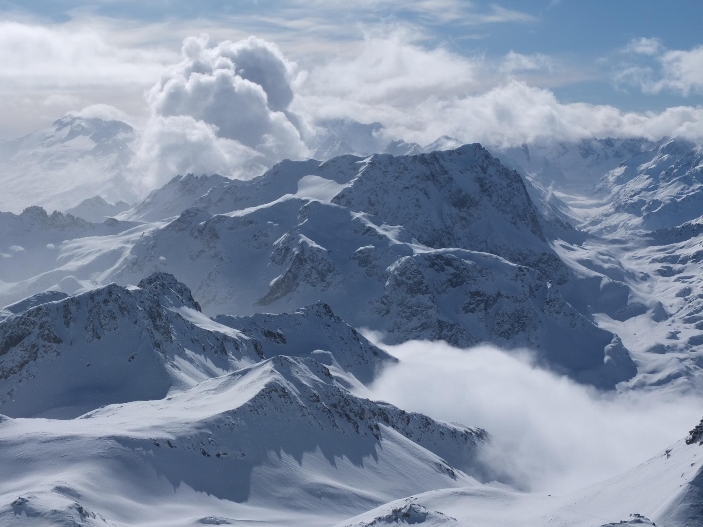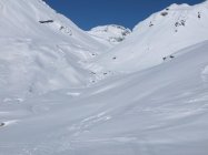 Schneeverhältnisse gut, Sichtverhältnisse stark wechselnd, vor allem vor Julierpass Nebel/Schneefall.