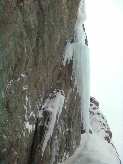 Muss man beobachten. Schwer zu sagen, ob es diesen Winter noch kletterbar wird. Evtl. ist die Säule vor einiger Zeit zusammengebrochen; oben ist sie nicht sehr massiv verwachsen. Ganz links vor der Wand (also vor Flying Circus usw.) sieht man die Säule ganz. Es wäre schön, die Eiskletterer könnten ein Fernglas mitnehmen und hier ihre Beobachtungen veröffentlichen.