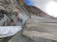 Mit der Hitze wird sich die Situation am Einstieg, resp. der Übergang vom Schnee auf den Fels, verändern. Ob's einfacher oder komplizierter wird, ist schwer zu sagen.