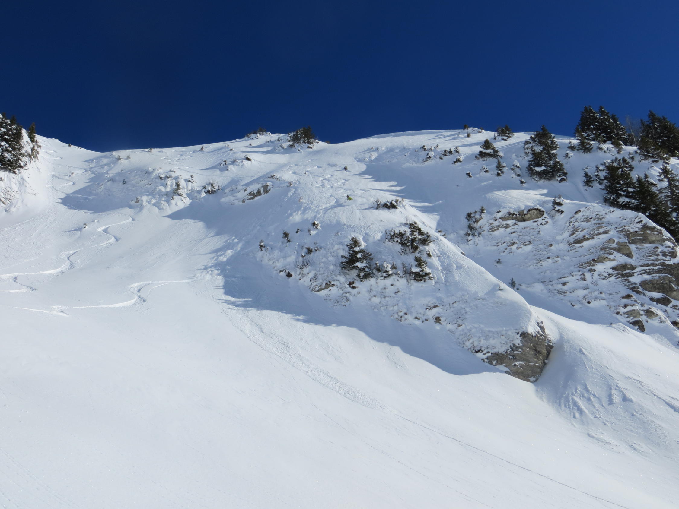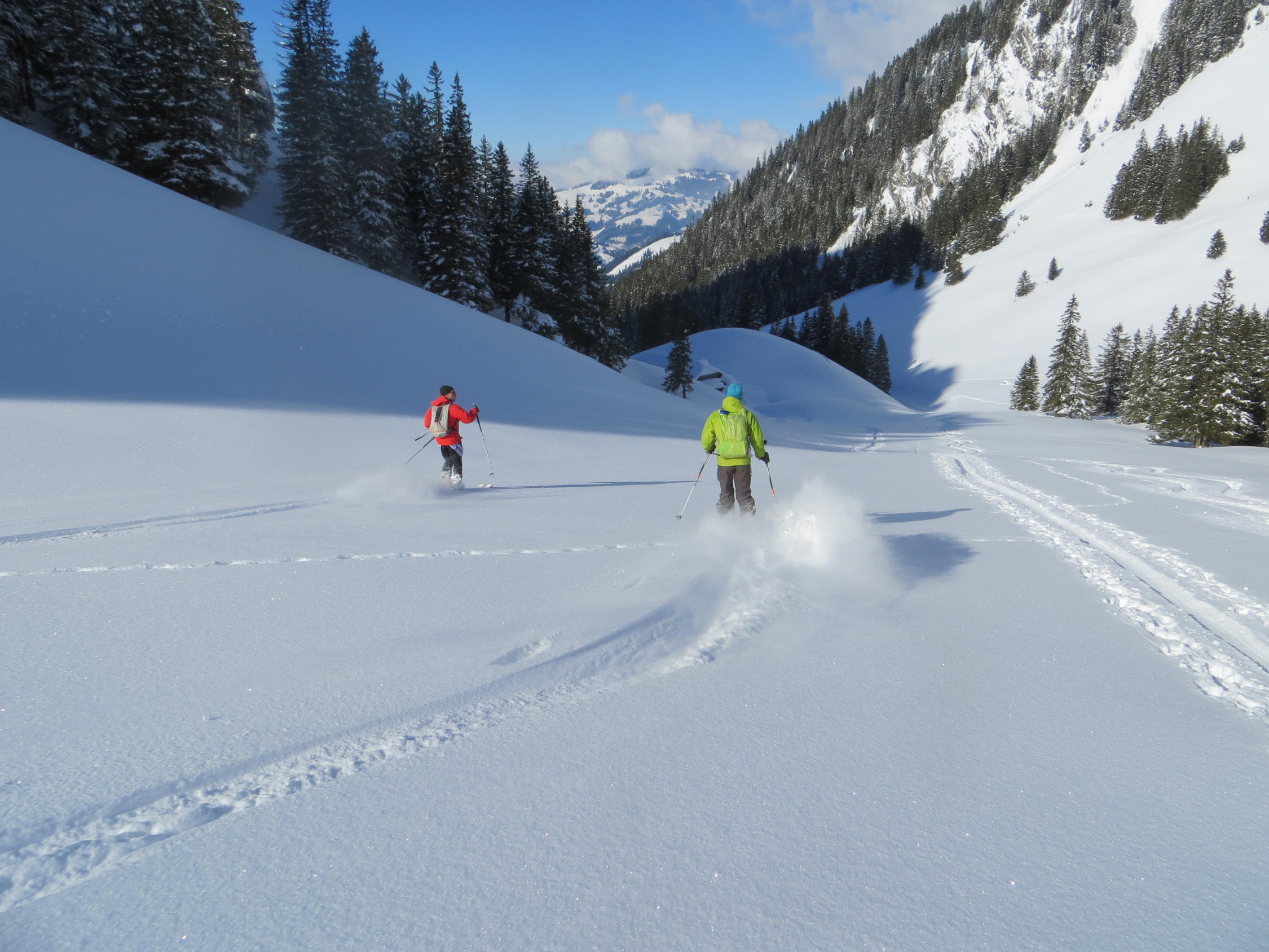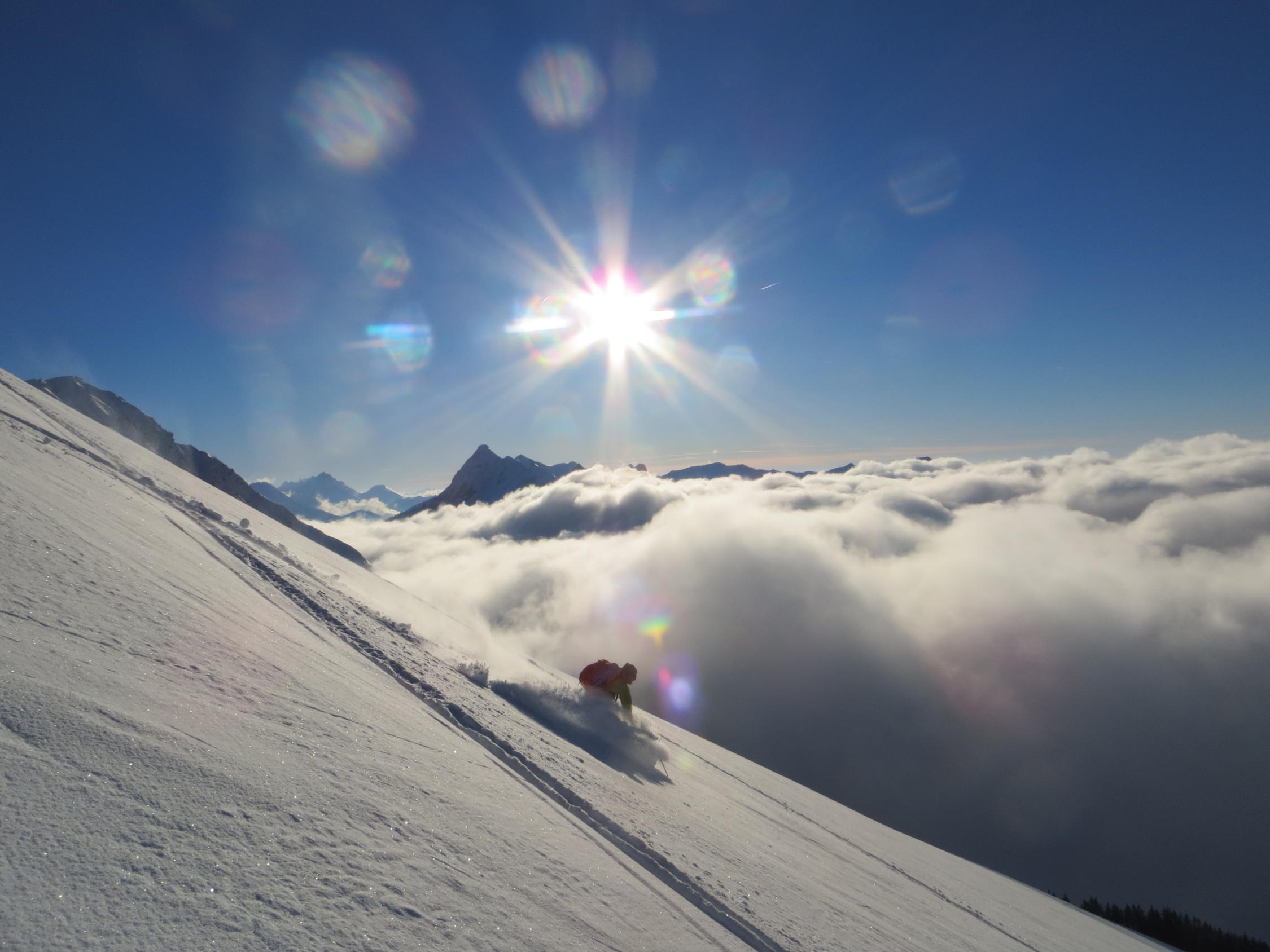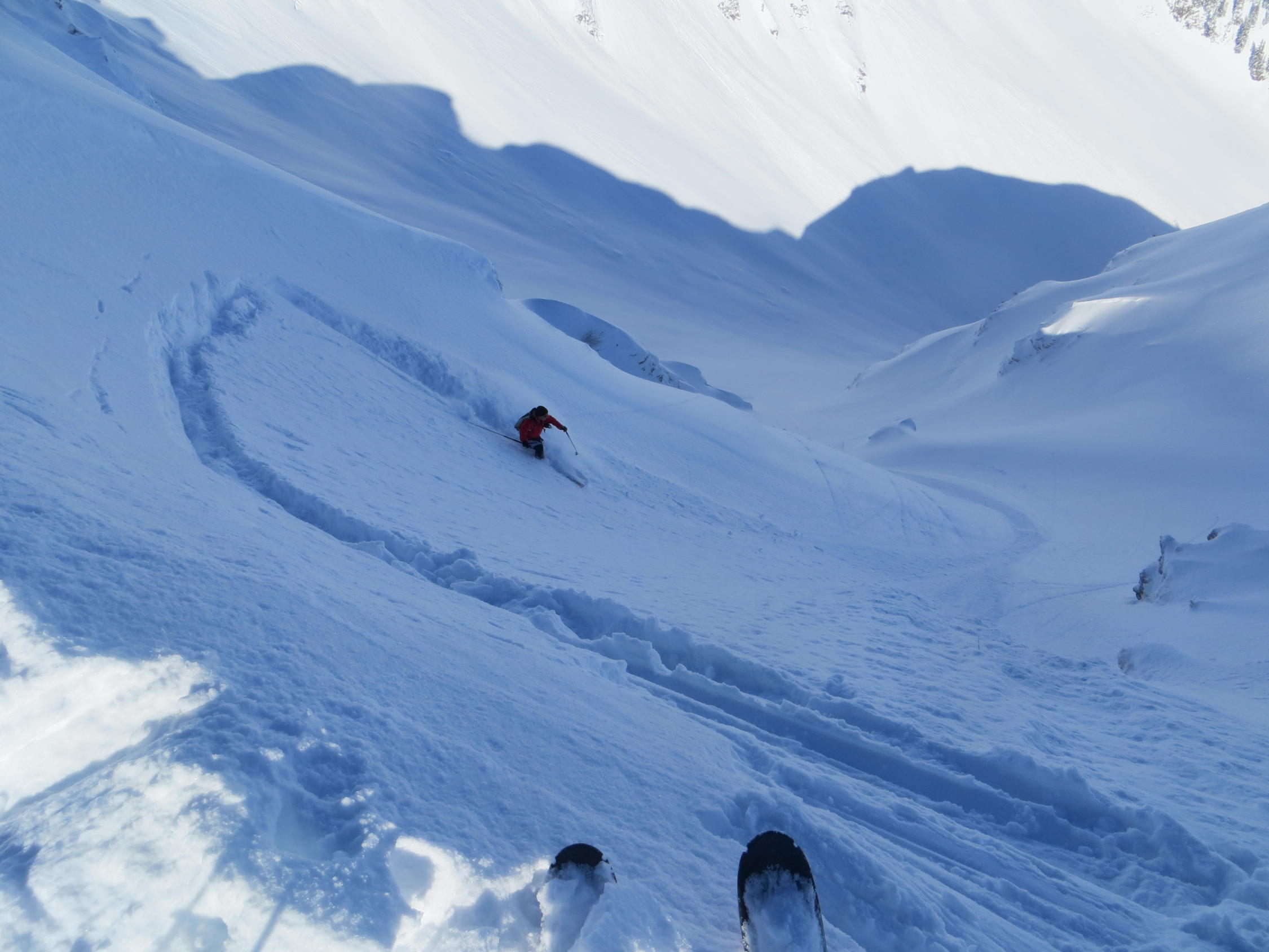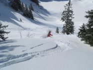 Unverspurter Pulver à discrétion überall... Sehr wenig Windeinfluss auf die Schneedecke, daher sehr inkl. sehr steiles Gelände angenehm zu riden!