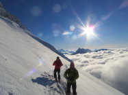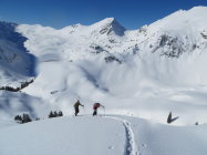 Hammer-Powderday mit 4 Hängen und knapp 2300m unverspurtem Gelände (musste aber 1500m im Pulver spuren...). Dann noch Sonnenuntergangspowdersession an Kaisereggwesthang... Merci à Jeff et Daniel pour la compagnie! :-)