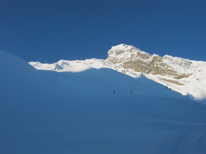 Es liegt so viel Schnee wie sonst selten um diese Zeit. Am Samstag wurde eine Ski-/Schneeschuhspur mit einer prima Anlage gelegt. Auch die "Schlänggen"-Querung weist eine sehr gute Spur auf.