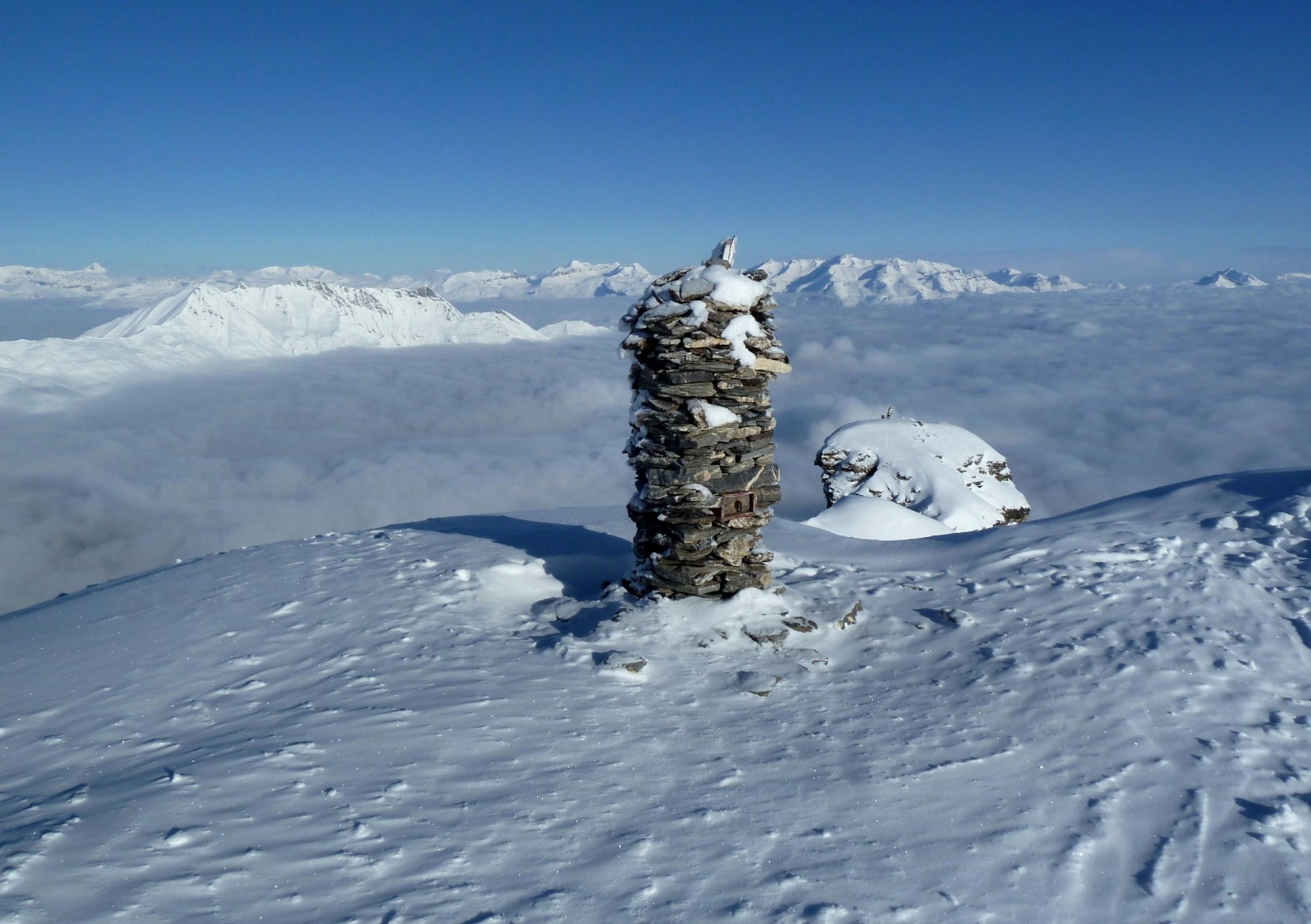 Ich stand schon unzählige Male auf diesem Gipfel. So eindrücklich habe ich ihn selten erlebt. Sogar der Schatten des Beverin war im Wolkenmeer zu sehen. Das Fotografieren auf dem Gipfel ohne Handschuhe war nicht so zuträglich...