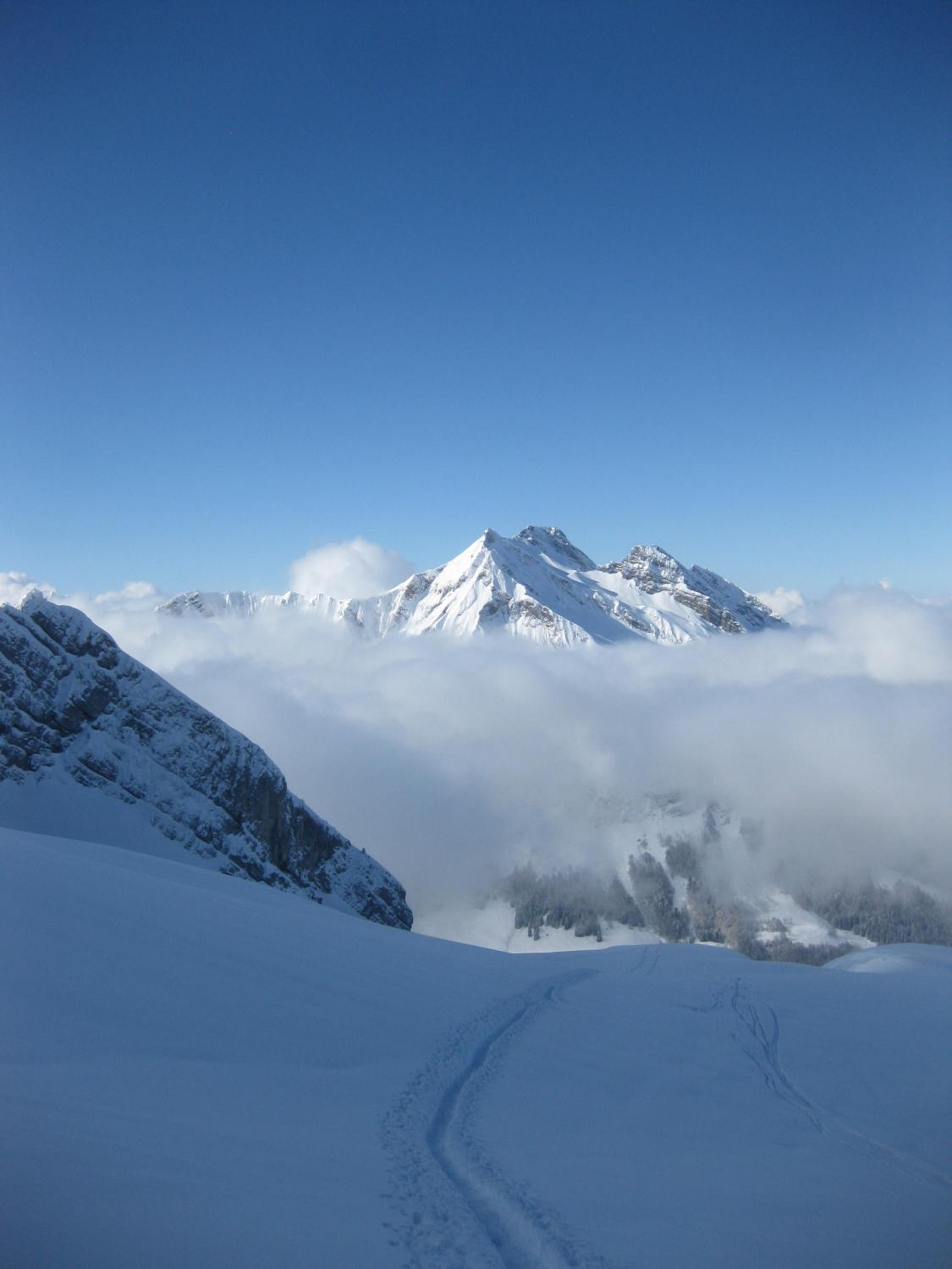 Super Verhältnisse, anfangs noch Nebel, dann blauer Himmel oben alles Pulver das letzte Stück hat Sonne bekommen der Schnee ist schwerer