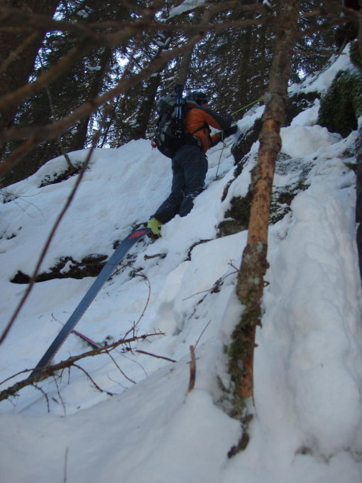 Sind in der Abfahrt Spuren gefolgt und durchs Bärenloch abgefahren. Danke den VorfahrerInnen war super, nur im Wald unten vor dem letzten Hang nach Hodel haben wir eine kurze leuchtende Repschnur zum Abseilen zurückgelassen...