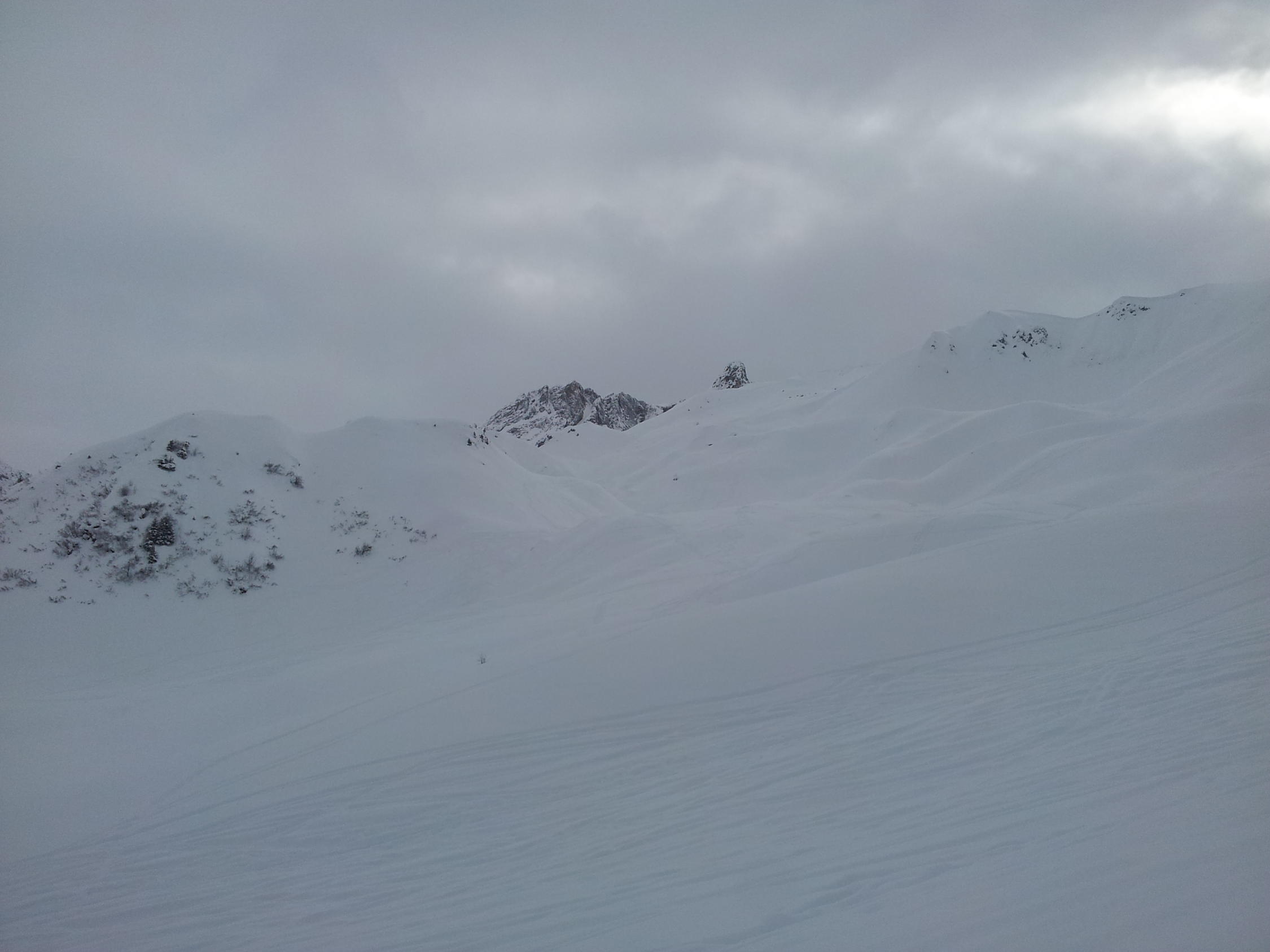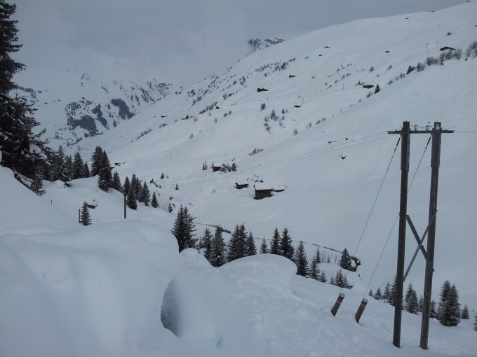 Alte Gleitschneerutsche sichtbar am östlich gegenüberliegenden Hang der Gämpiflue.