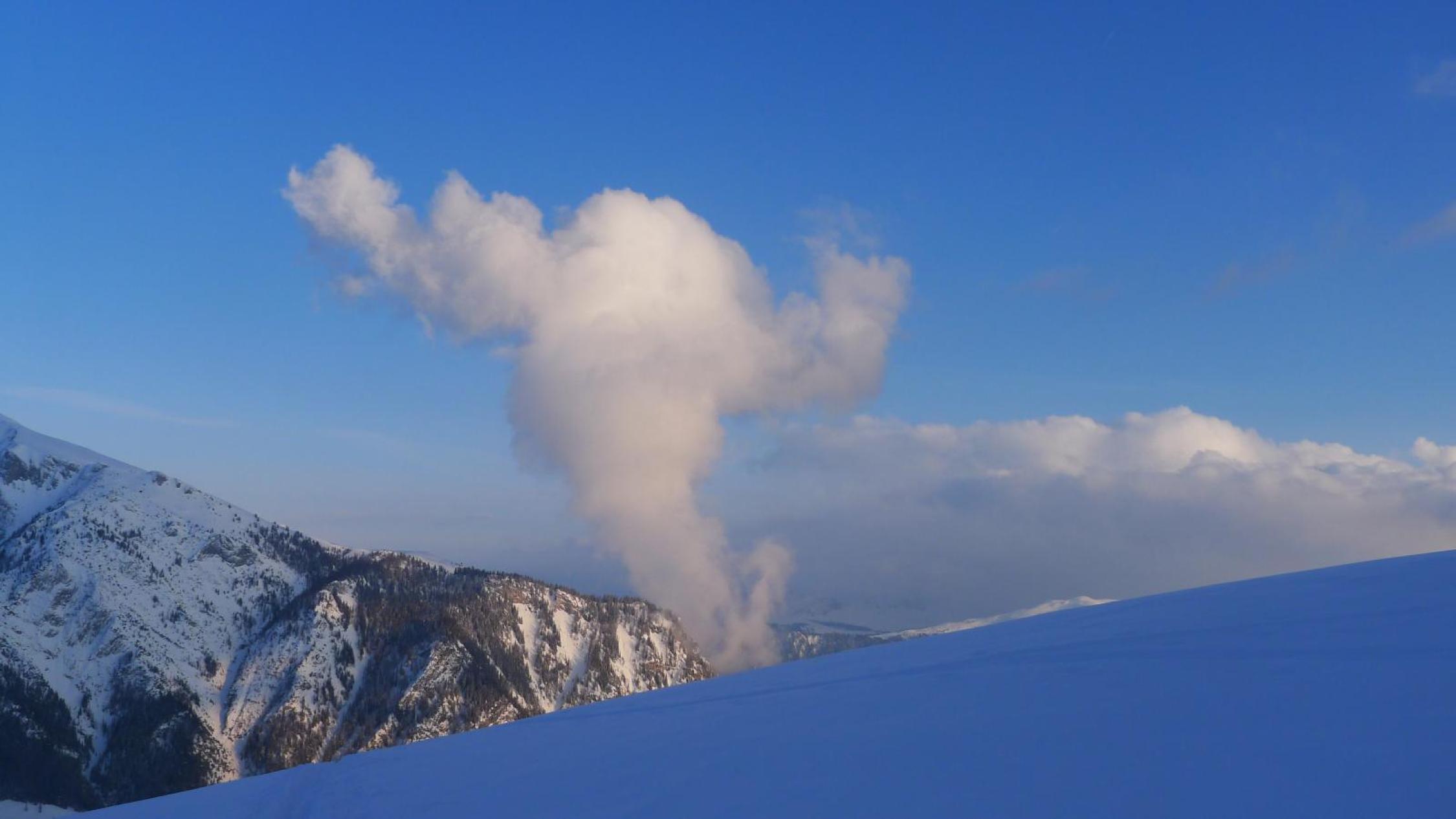 Sehr gute Verhältnisse, Powder pur im Wald, oberhalb Baumgrenze rutschen die 10-15 cm Pulverschnee etwas auf windgepresstem Untergrund.