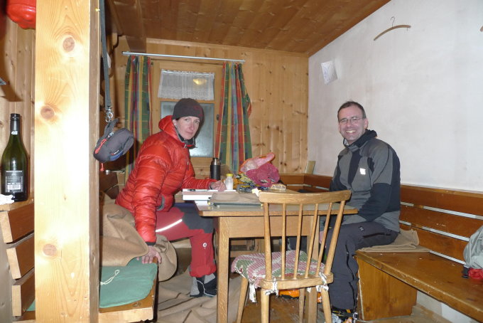 Der (offene) Winterraum war seit drei Wochen nicht benutzt und eher frostig. Wenig Holz vorhanden und keine Hüttenschlappen.