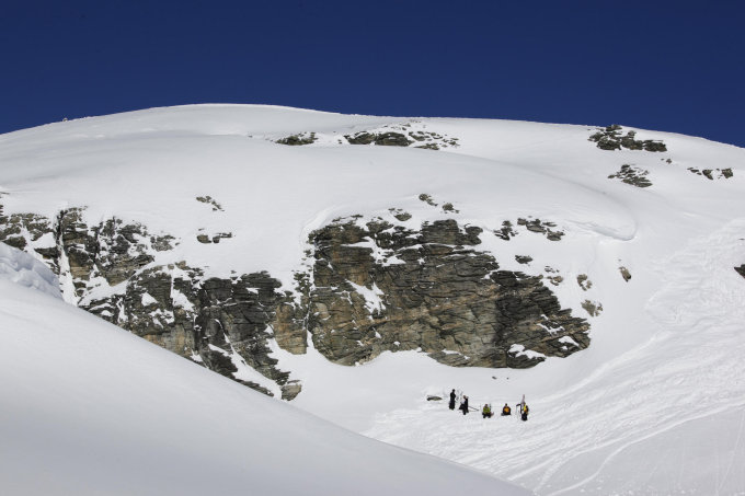 Gute Verhältnisse im Aufstieg, bei der Abfahr wegen bereits schräg stehender Sonne schon leichte Deckelbildung.