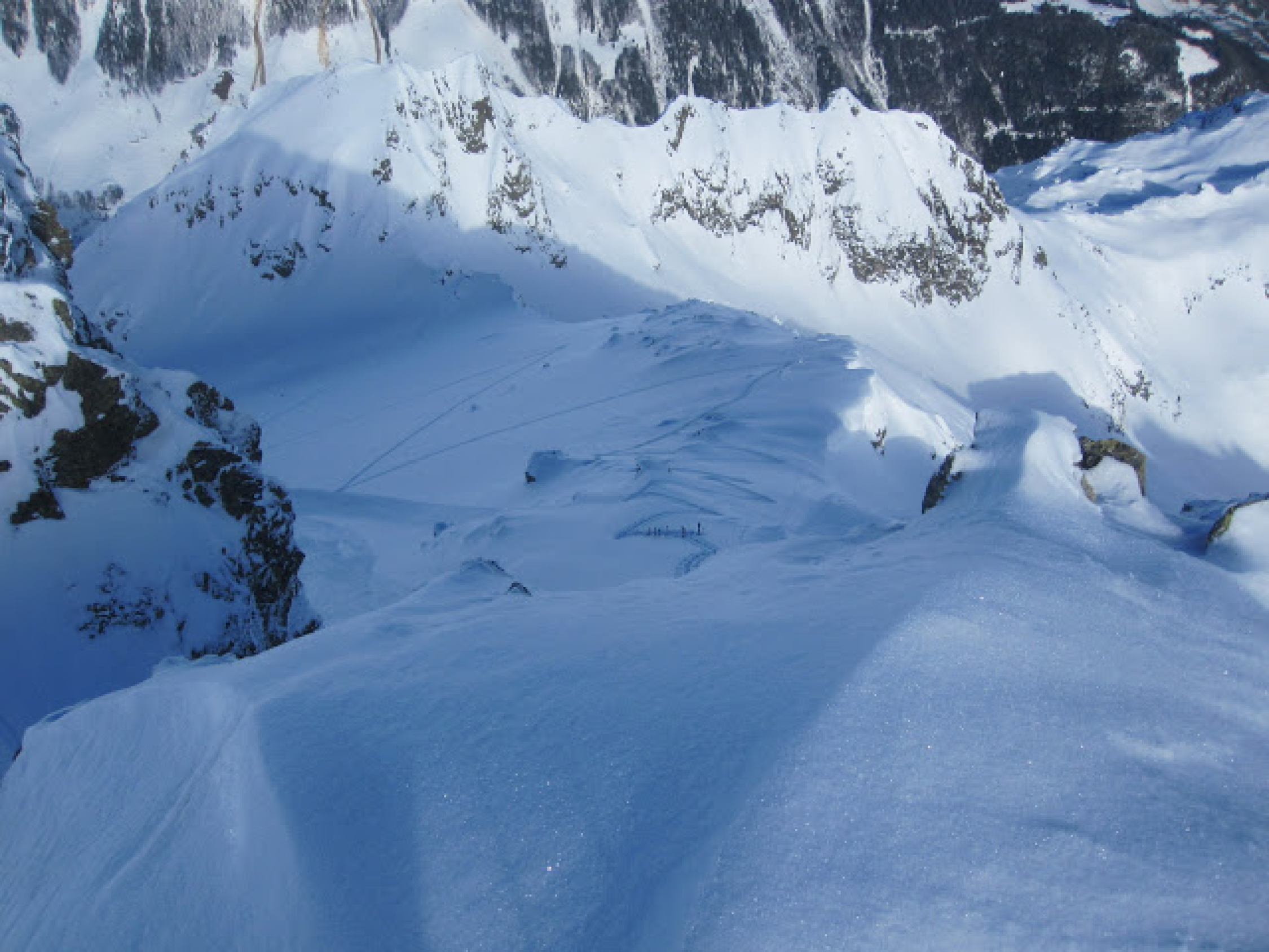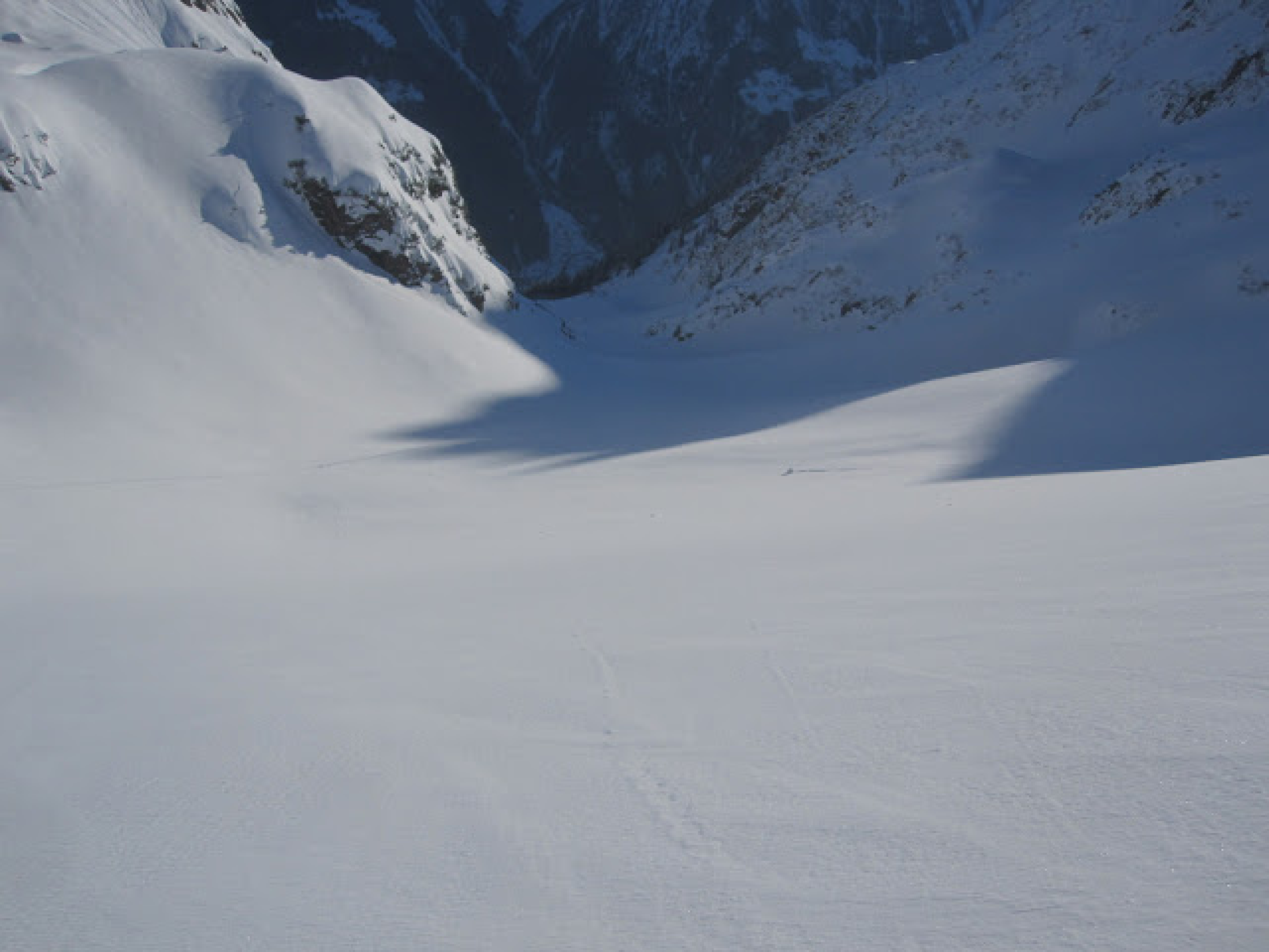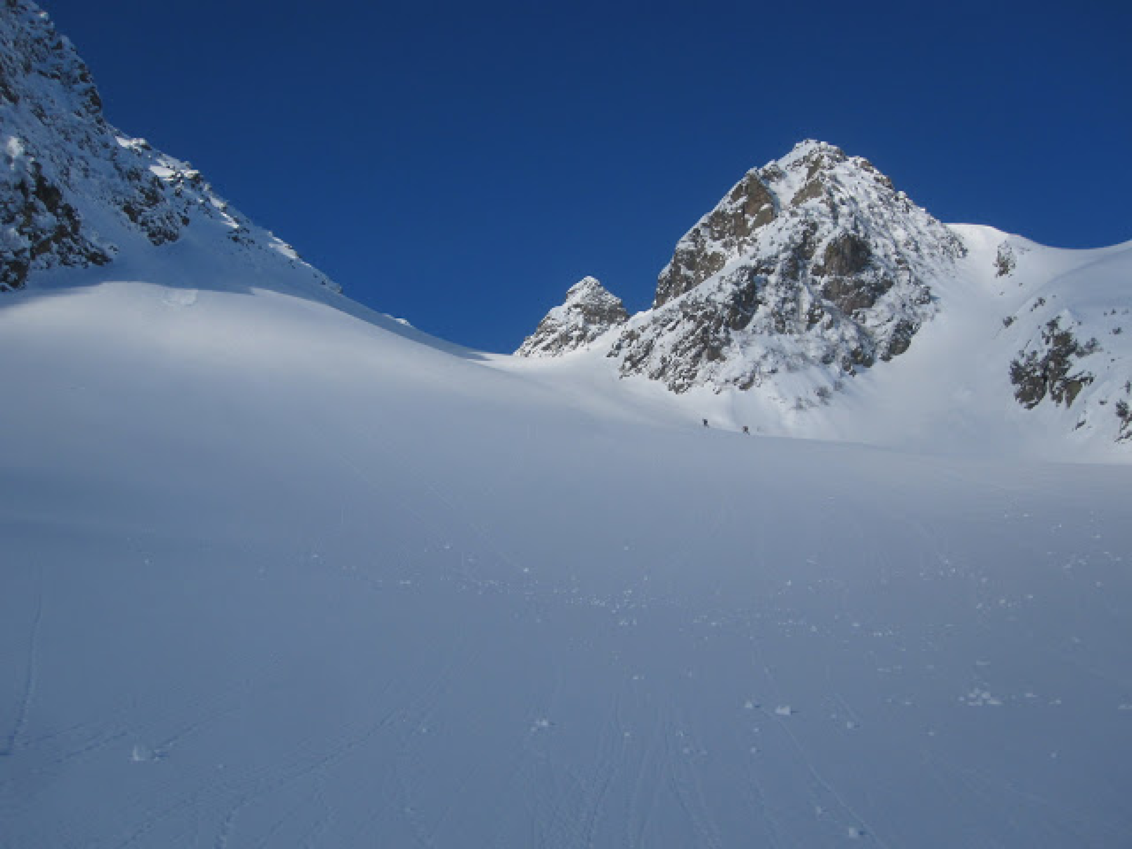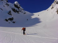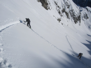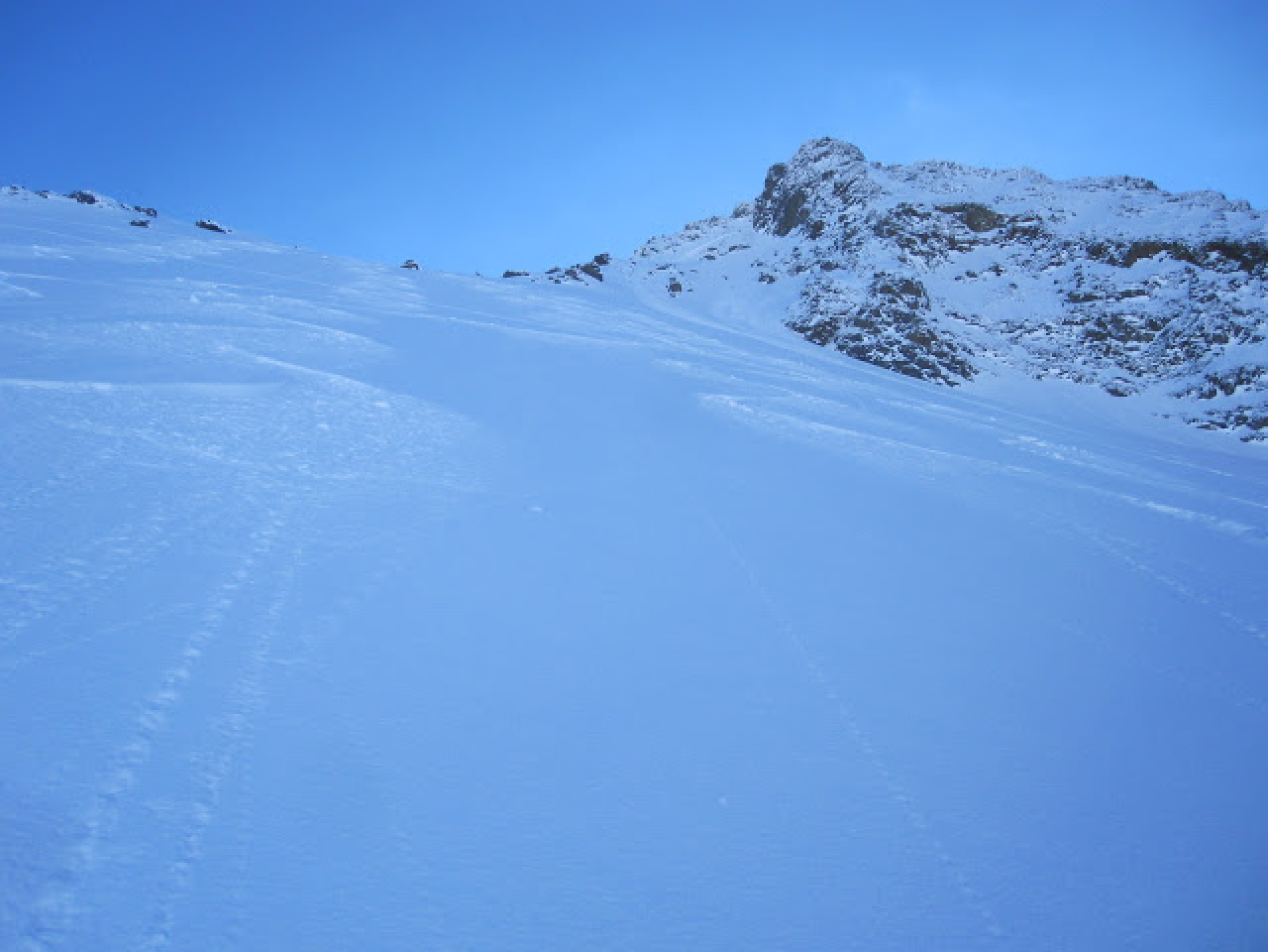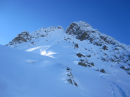 Die Verhältnisse (Schneelage und Lawinengefahr) lassen es leider nur selten zu, diese einsame, steile Skitour vom Talboden aus zu machen.