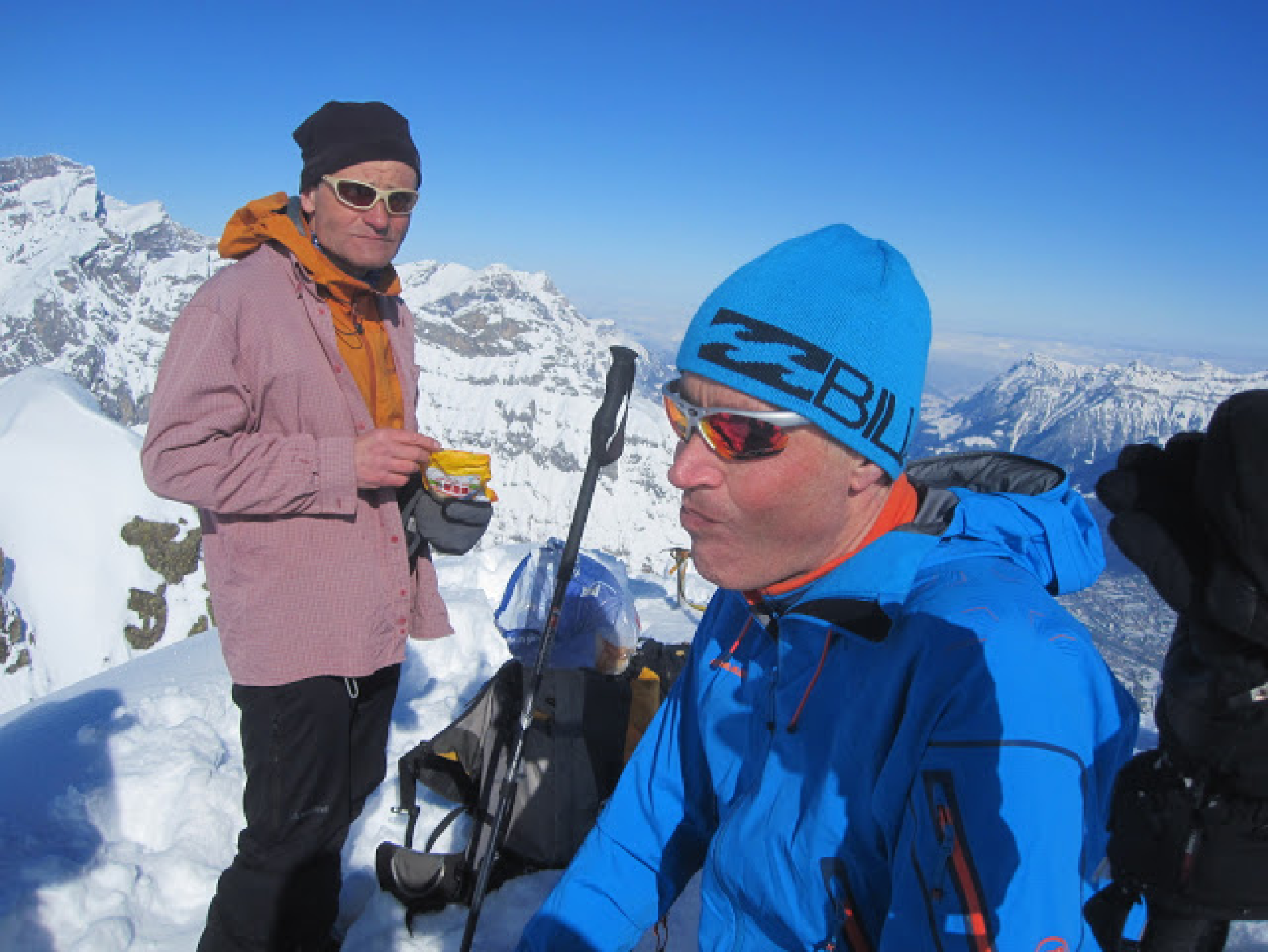 Ein Traumtag, Pulver in Hülle und Fülle und alles noch unberührt. Der Fussanstieg zum Gipfel verlangte heute etwas Wühlarbeit.