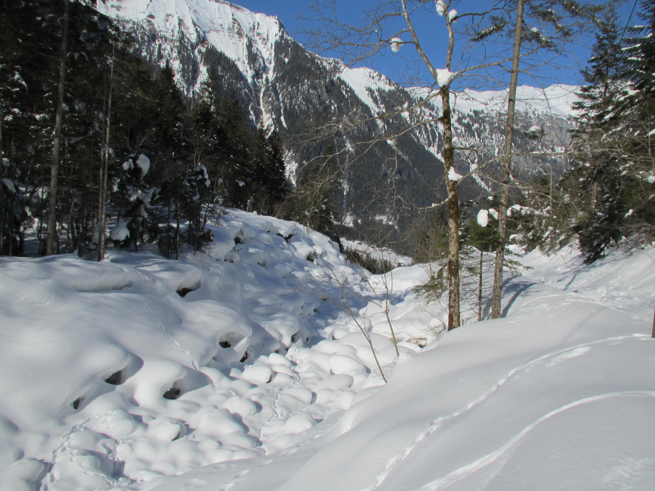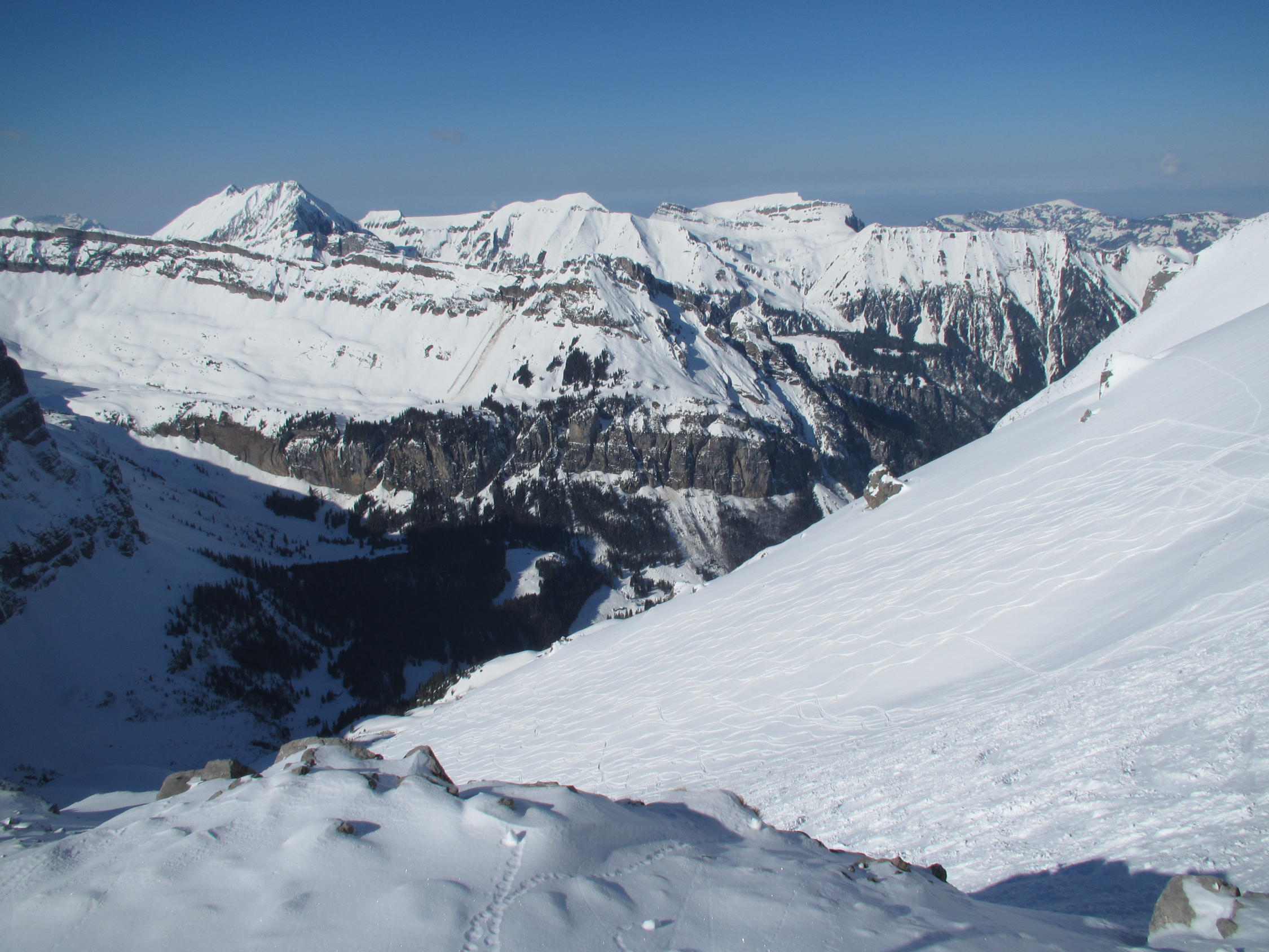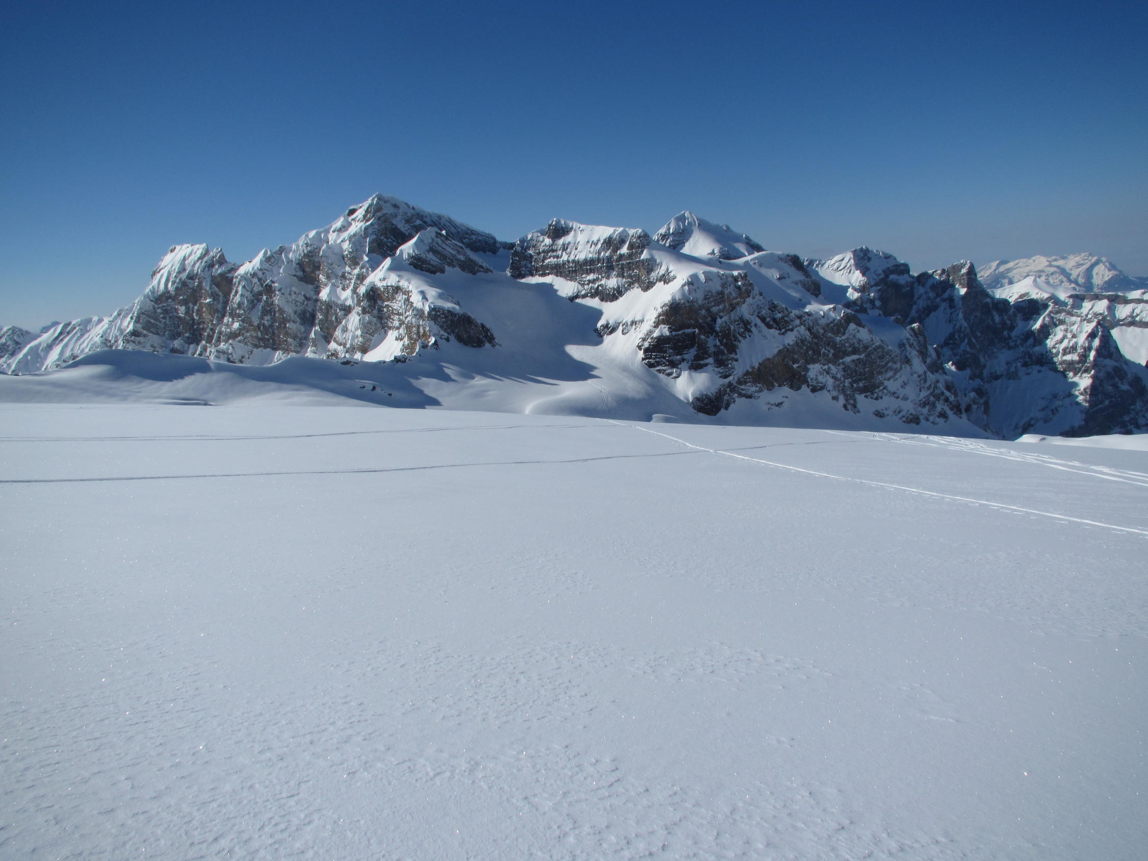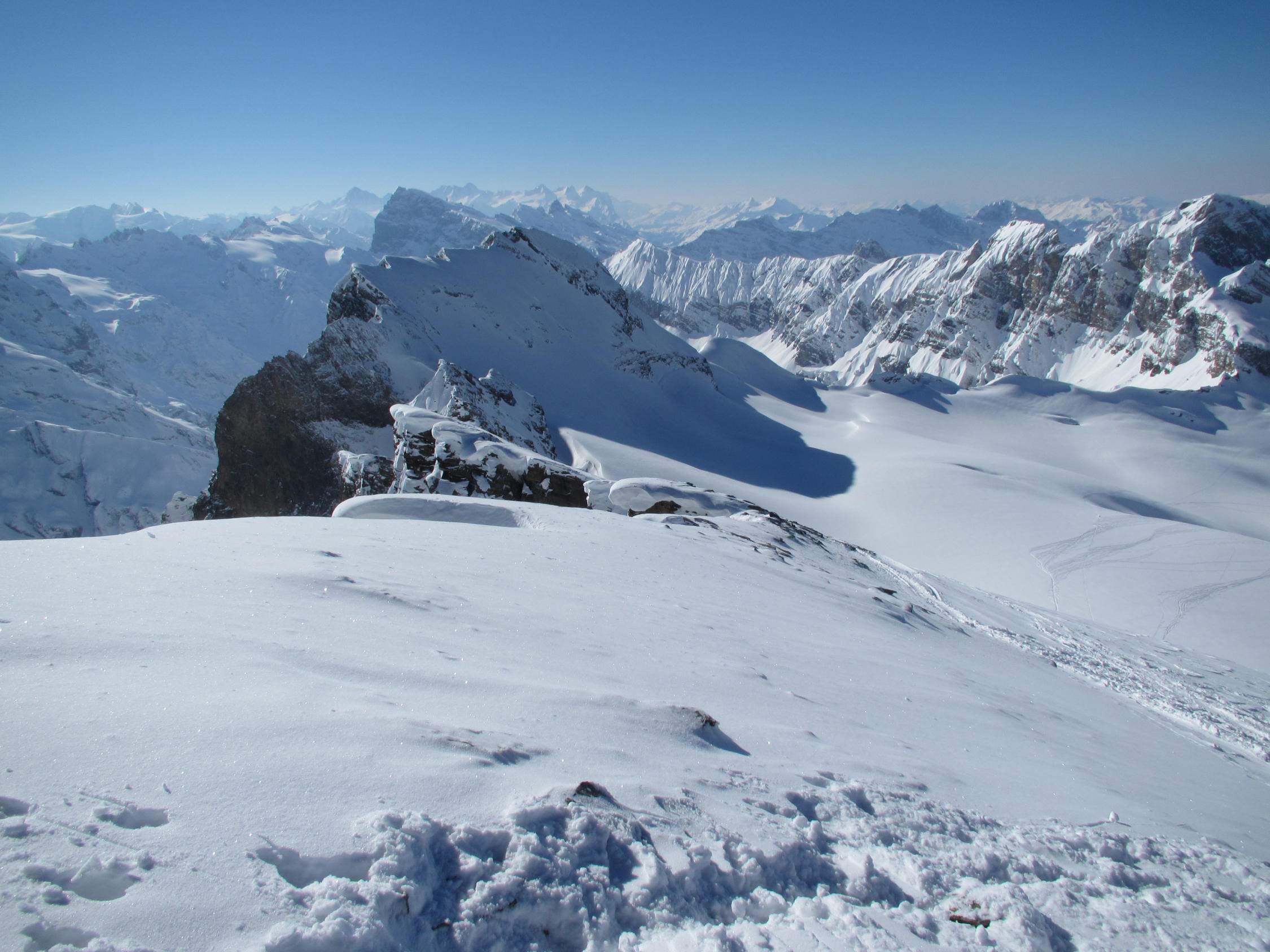 Von St.Jakob durch das tiefverschneite Grosstal dem Waldweg entlang zum Langboden. Weiter zum Steinhüttli und über den Bösenboden zu den Firnbäch hinauf. Dort wie üblich alles ...vom Winde verweht... Der Steilhang musste auch wieder neu gespurt werden. Abfahrt von der Moräne auf den Blüemlisalpfirn. Auf tiefer, gut angelegter Spur zum Sattel unter dem Brunnistock. Heute konnte man mit den Skis an den Füssen auf den Gipfel. Gewaltige Fernsicht besonders in die Urner Bergwelt. Herrliches Winterwetter, mässiger Wind aber kalt. Drei Skitourler aus meinem Nachbardorf trafen auf dem Gipfel ein, drei weitere waren im Anstieg, dass wars dann schon. Der Brunni wurde am letzten Weekend recht gut besucht, aber es gab immer noch genügend Platz eigene Linien in den tiefen Pulverschnee zu ziehen. Kurzer Gegenanstieg auf die Moräne, dort noch die gewaltige Bergszenerie an der Sonne genossen. Unvergesslicher Downhill bis zum Langboden hinab. Auf der gut eingeschneiten Waldstrasse nach St. Jakob zurück.