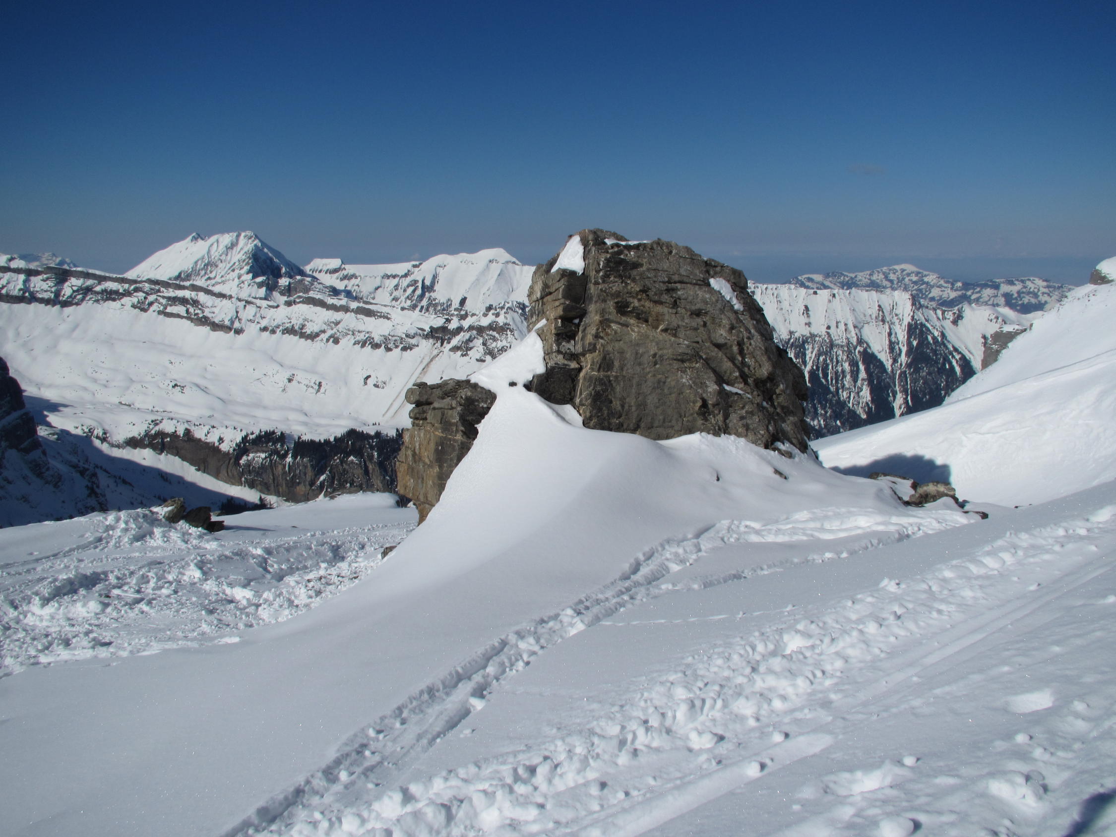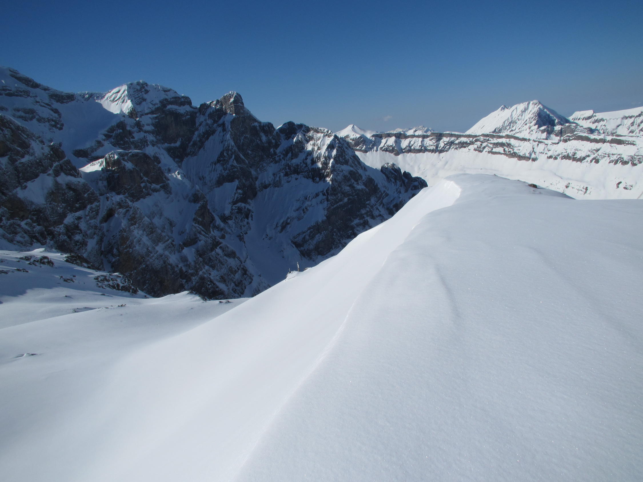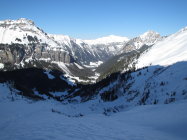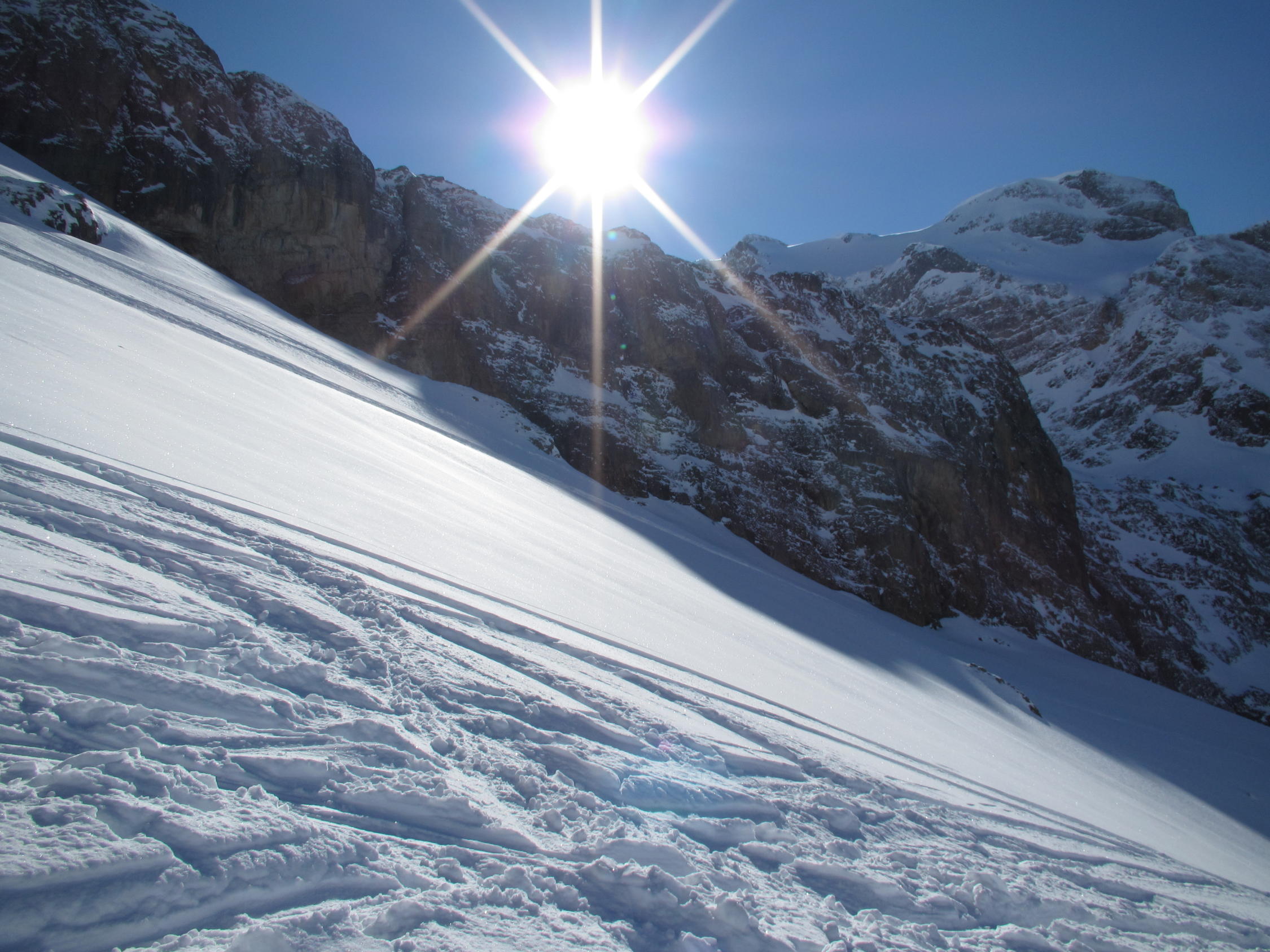 Von St.Jakob durch das tiefverschneite Grosstal dem Waldweg entlang zum Langboden. Weiter zum Steinhüttli und über den Bösenboden zu den Firnbäch hinauf. Dort wie üblich alles ...vom Winde verweht... Der Steilhang musste auch wieder neu gespurt werden. Abfahrt von der Moräne auf den Blüemlisalpfirn. Auf tiefer, gut angelegter Spur zum Sattel unter dem Brunnistock. Heute konnte man mit den Skis an den Füssen auf den Gipfel. Gewaltige Fernsicht besonders in die Urner Bergwelt. Herrliches Winterwetter, mässiger Wind aber kalt. Drei Skitourler aus meinem Nachbardorf trafen auf dem Gipfel ein, drei weitere waren im Anstieg, dass wars dann schon. Der Brunni wurde am letzten Weekend recht gut besucht, aber es gab immer noch genügend Platz eigene Linien in den tiefen Pulverschnee zu ziehen. Kurzer Gegenanstieg auf die Moräne, dort noch die gewaltige Bergszenerie an der Sonne genossen. Unvergesslicher Downhill bis zum Langboden hinab. Auf der gut eingeschneiten Waldstrasse nach St. Jakob zurück.