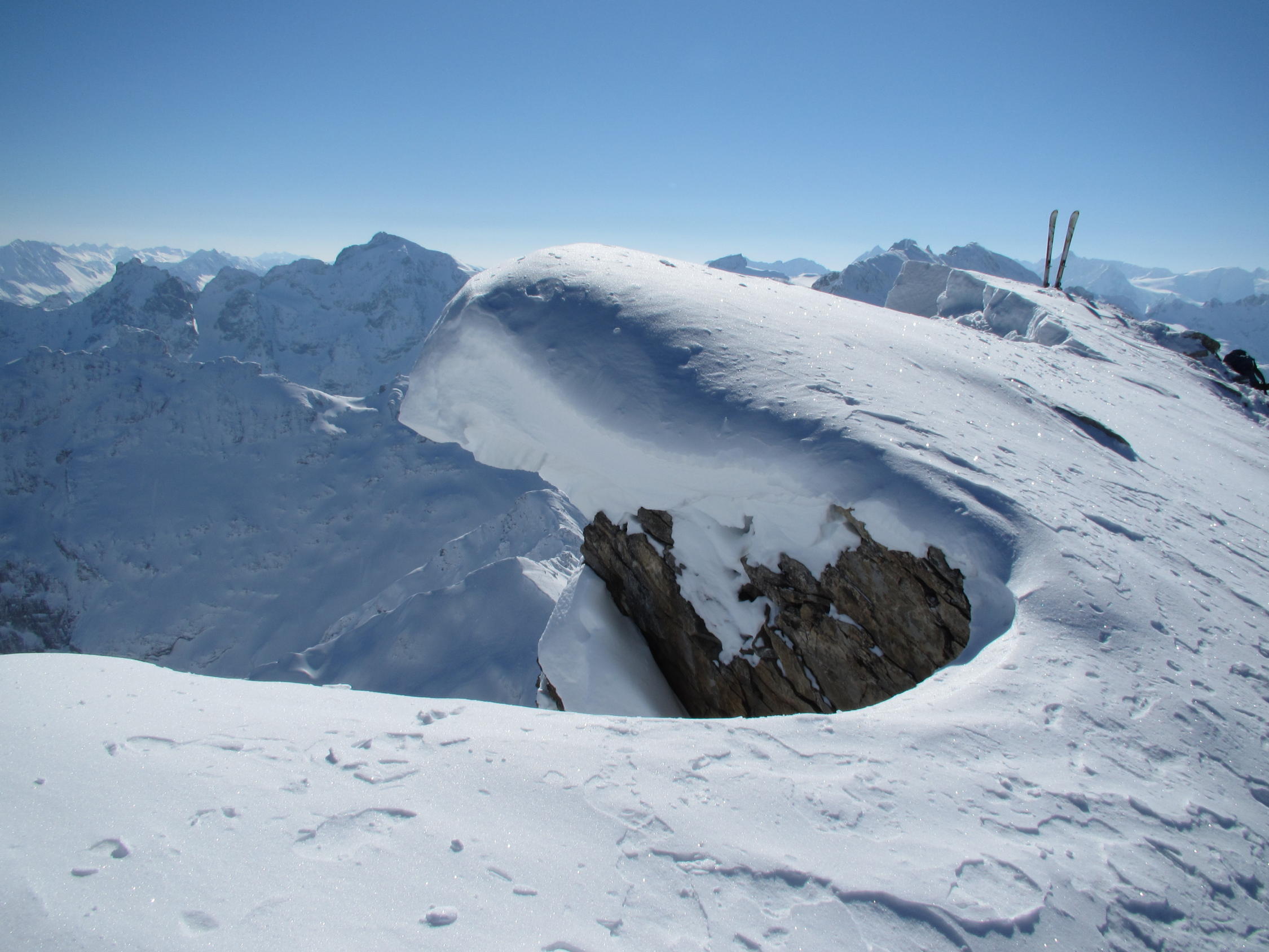 Für die steile Gipfelflanke Harscheisen von Vorteil, ausrutschen darf man dort nicht.