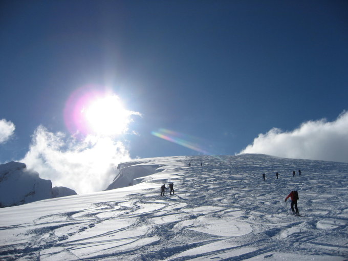 Pulver, Gipfelhang etwas windgepresst, stark verfahren