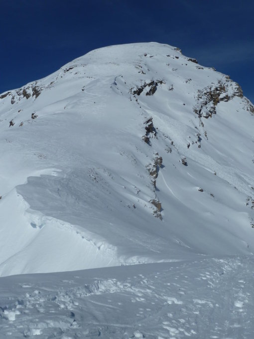 Am Südhang hat es einen relativ grossen und noch ziemlich frischen Lawinenabgang. Anrissstelle am Südostgrat, ca. 2800m, Lawinenkegel bis ca. 2500m runter