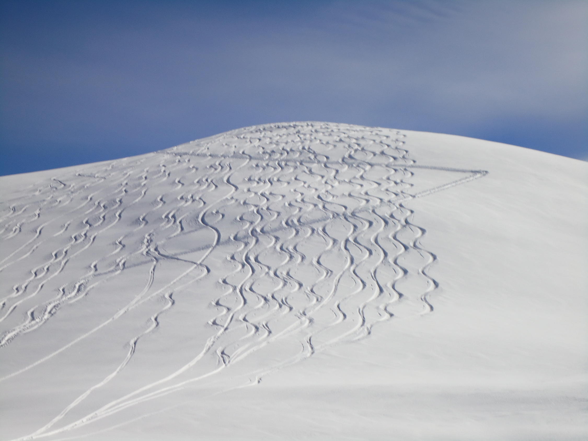 Heute perfekte Verhältnisse. In der Abfahrt immer noch genialer Pulverschnee von oben bis ganz unten. Man findet immer noch Platz für eigene Spuren.