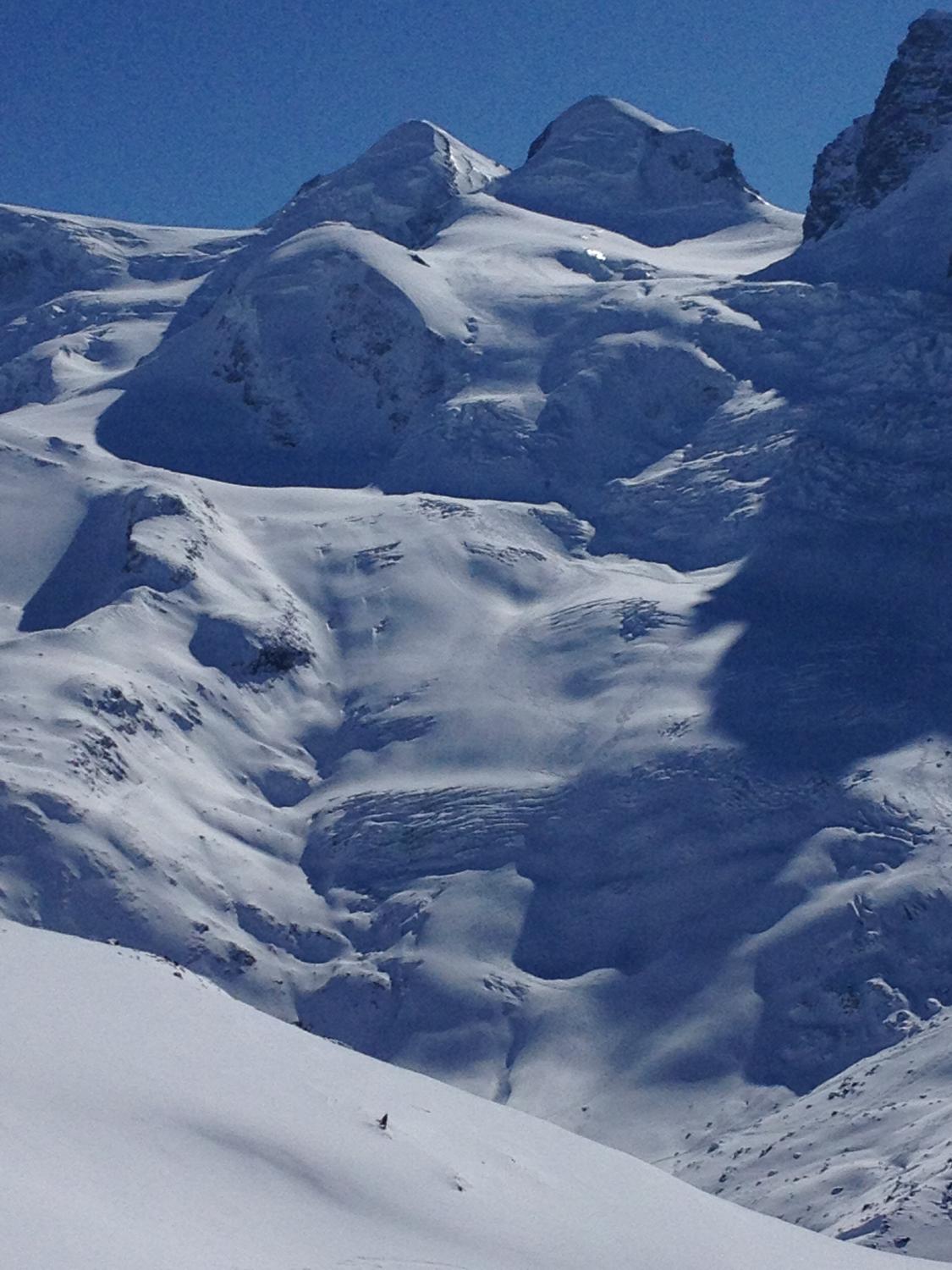 Beim Zustieg zur Hütte vom Gornergrad aus, sehr viele Lawienabgänge, ab Hütte Richtung Gipfel gar nichts.