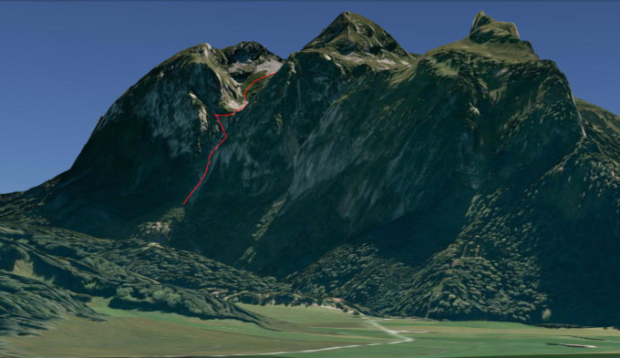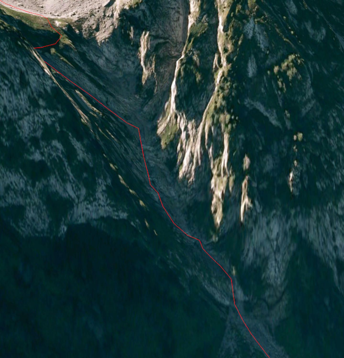 Ein schöner Blick das Couloir hinab: http://f.hikr.org/files/127090.jpg Den Felsvorsprung in der Mitte des Bildes rechts umfahren, links sind abschüssige Platten.