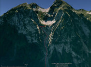 Einstieg, von unten gesehen: http://f.hikr.org/files/127089.jpg Abfahrt über die beiden grossen Blöcke ganz rechts im Bild.