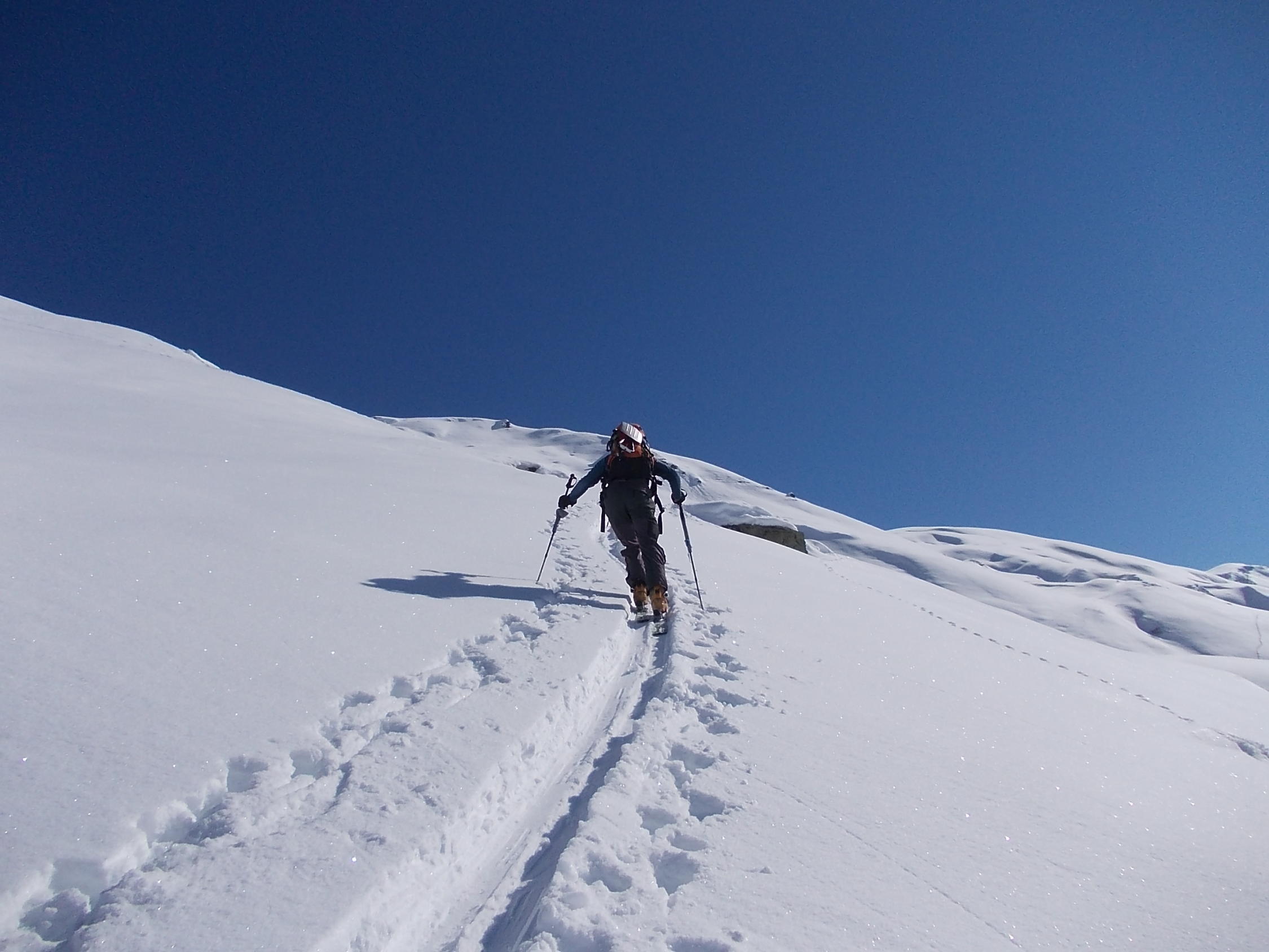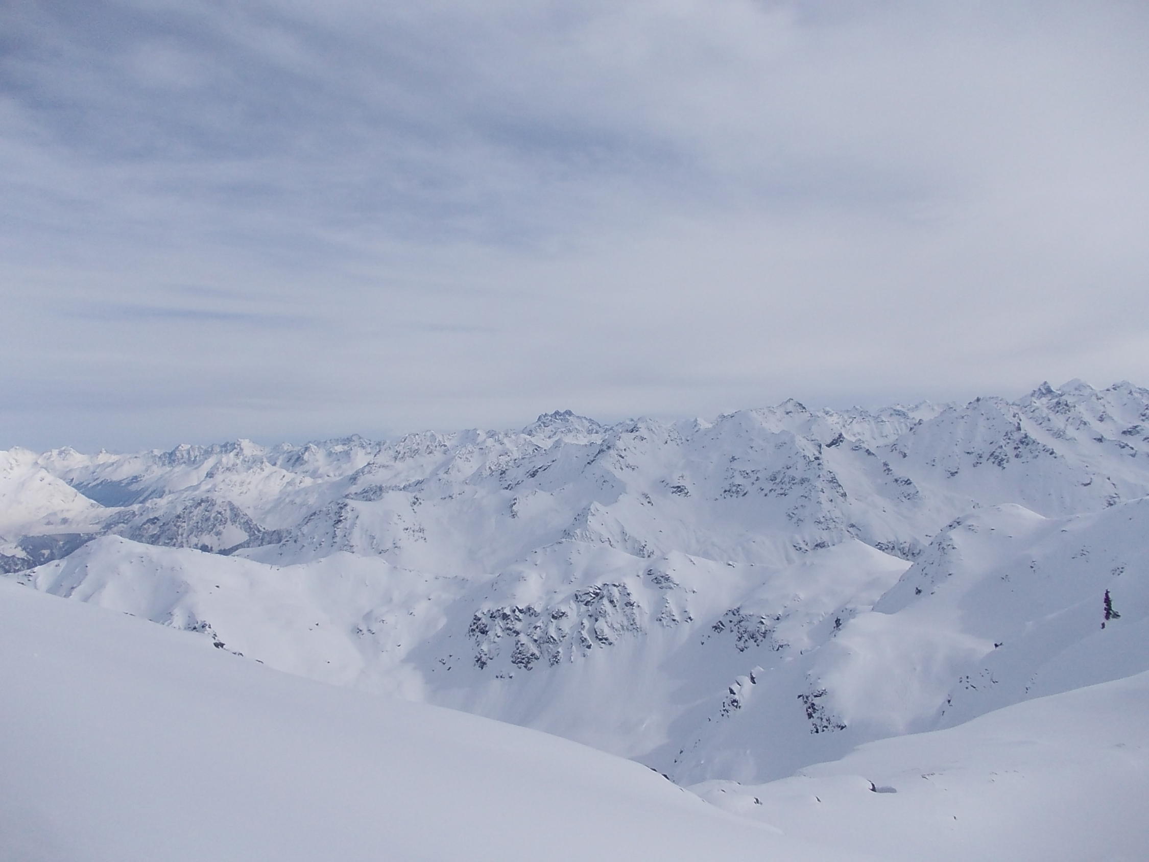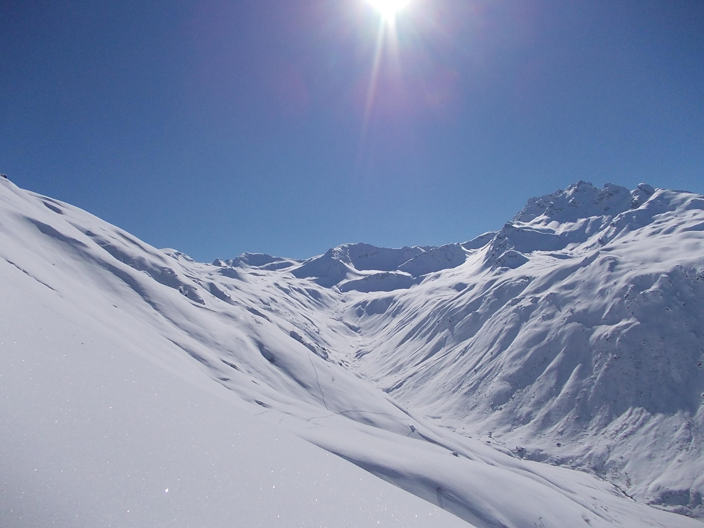 Ein Traumtourentag unter einem stahlblauen Himmel. Ab etwa 14.00 h zog die angekündigte Schlechtwetterfront aus Südwest herein, welche jedoch bis zum Ende unserer Tour (Wiederankunft Vergalden 15.00 h) keine Beeinträchtigung verursachte. Erst auf der Rückfahrt begann es zu schneien.