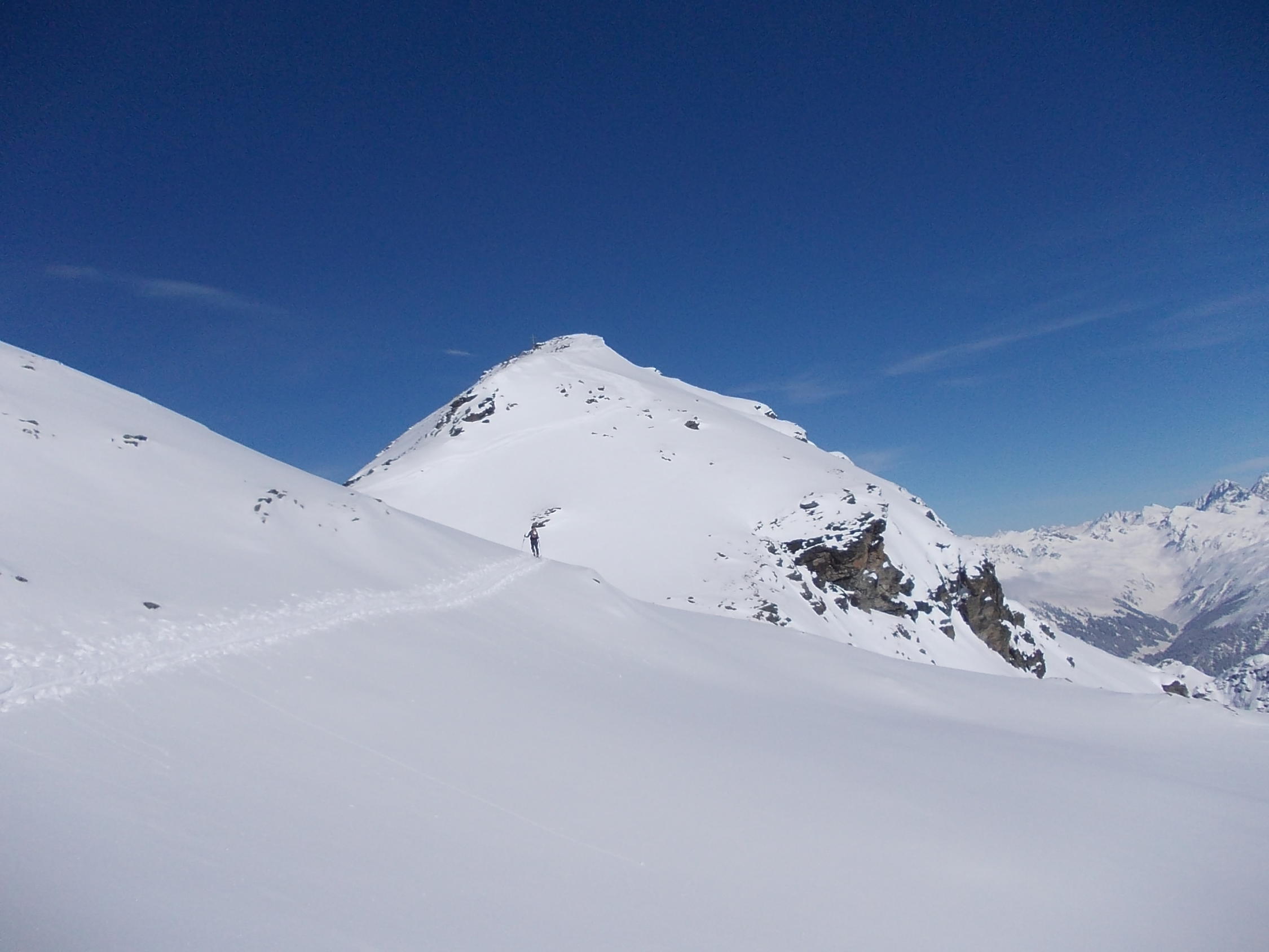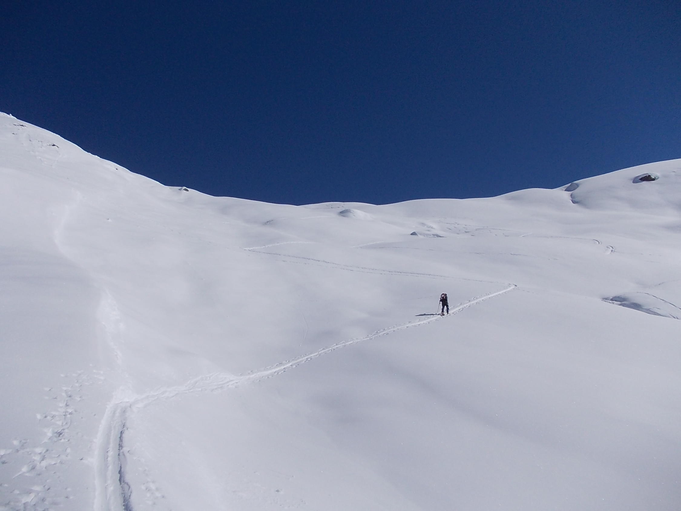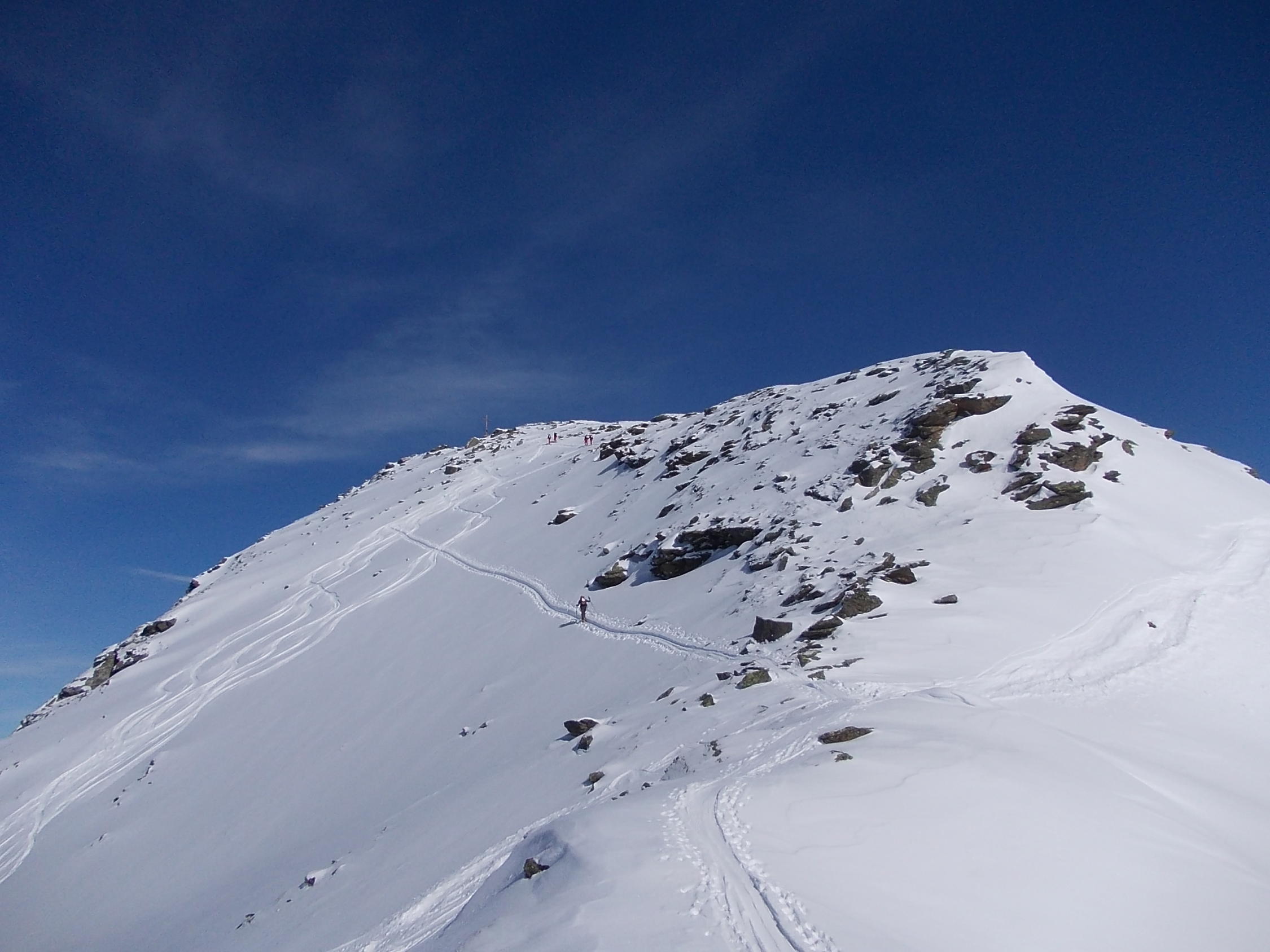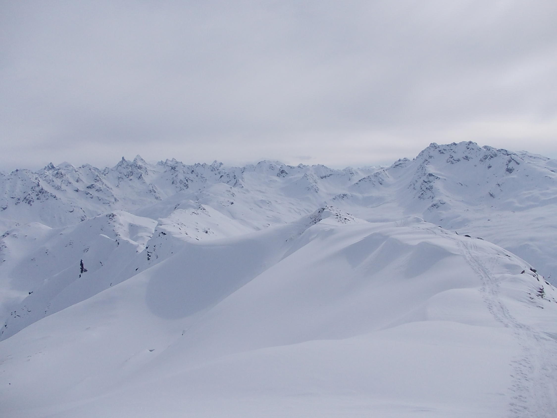 Ein Traumtourentag unter einem stahlblauen Himmel. Ab etwa 14.00 h zog die angekündigte Schlechtwetterfront aus Südwest herein, welche jedoch bis zum Ende unserer Tour (Wiederankunft Vergalden 15.00 h) keine Beeinträchtigung verursachte. Erst auf der Rückfahrt begann es zu schneien.