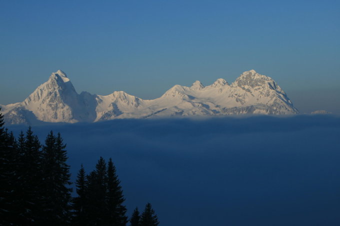Danke dem Spurer von den Vortagen, wobei auf dem Grat zum Gipfel, bei den Wächten etwas Vorsicht geboten werden muss