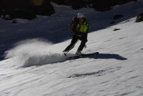 Sehr gute Schneeverhältnisse. Der Schnee war vom Wind so fest gepresst, dass es wie auf einer Piste abzufahren galt.