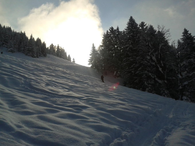 Sehr gute Verhältnisse. Trotz verfahrener Abfahrtshänge noch schöner leichter Pulver.