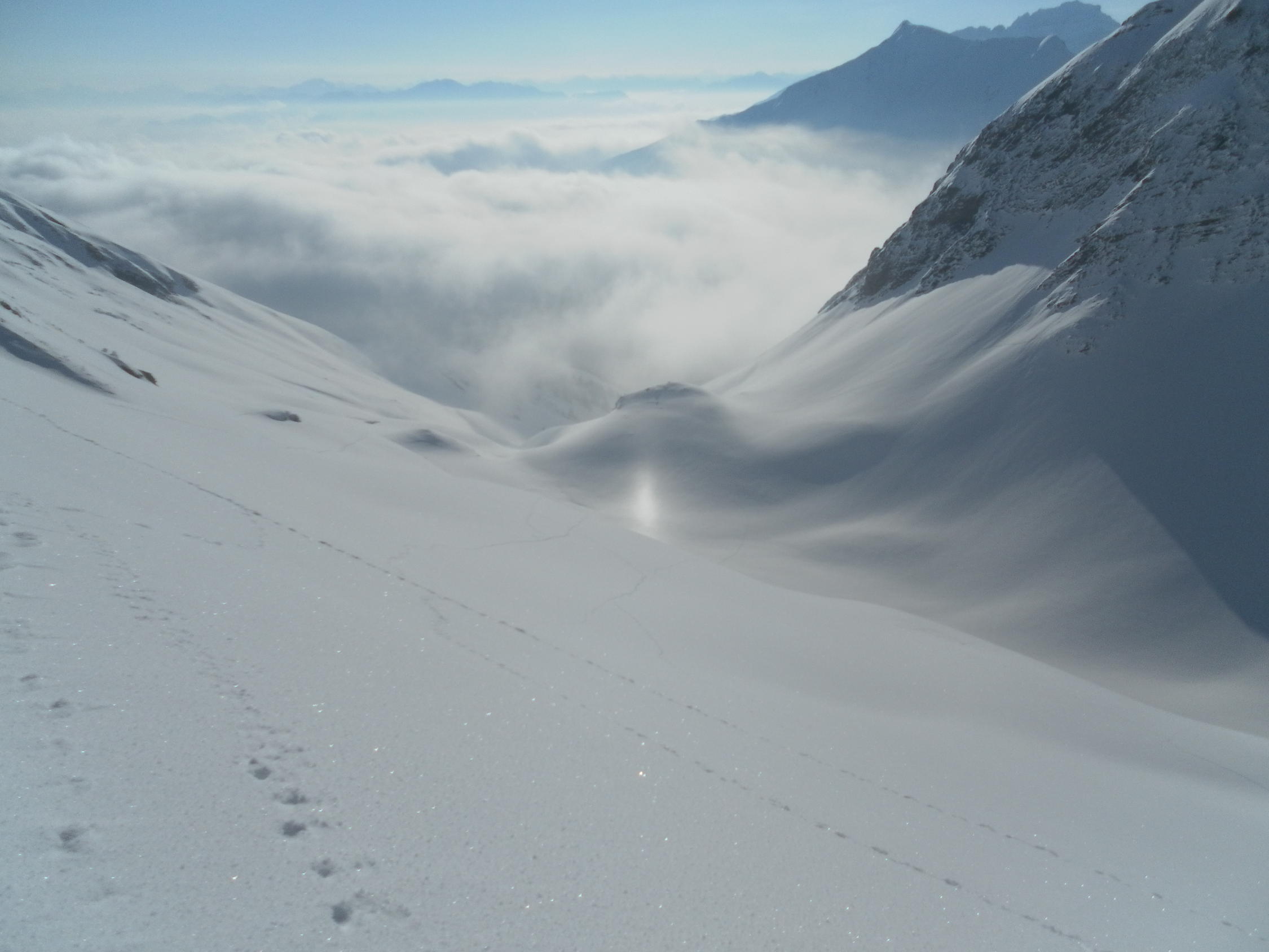 Super Powpow in der Abfahrt von der Pizolhütte. Macht sogar mit der schweren Packung noch riesig Spass!