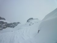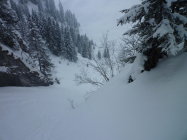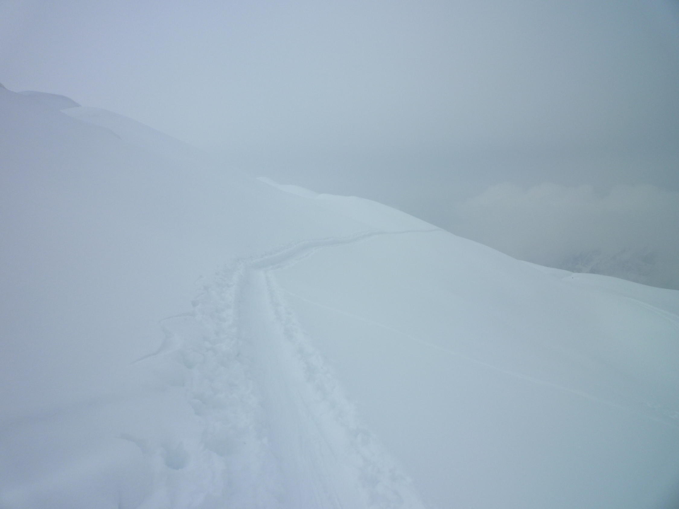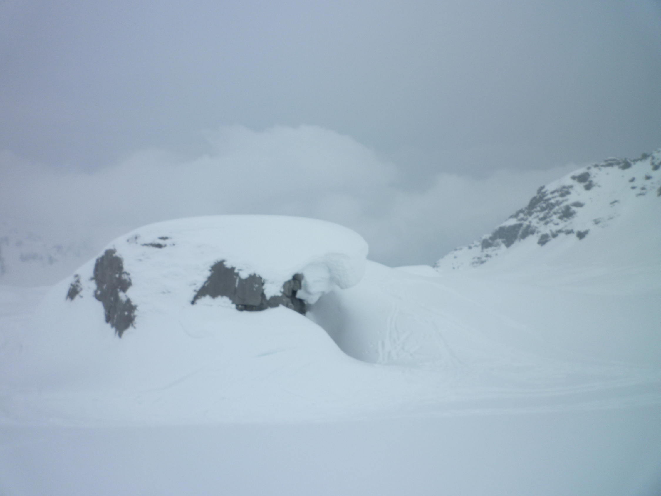Entgegen dem Meteo hat sich die Sonne häufiger blicken lassen. Pulver von Oben bis Unten, da hauptsächlich nordseitige Abfahrten. Im Tal auf den südseiten harter Firn mit etwas Neuschnee. Gute Spur und mehr als genügend Schnee.
