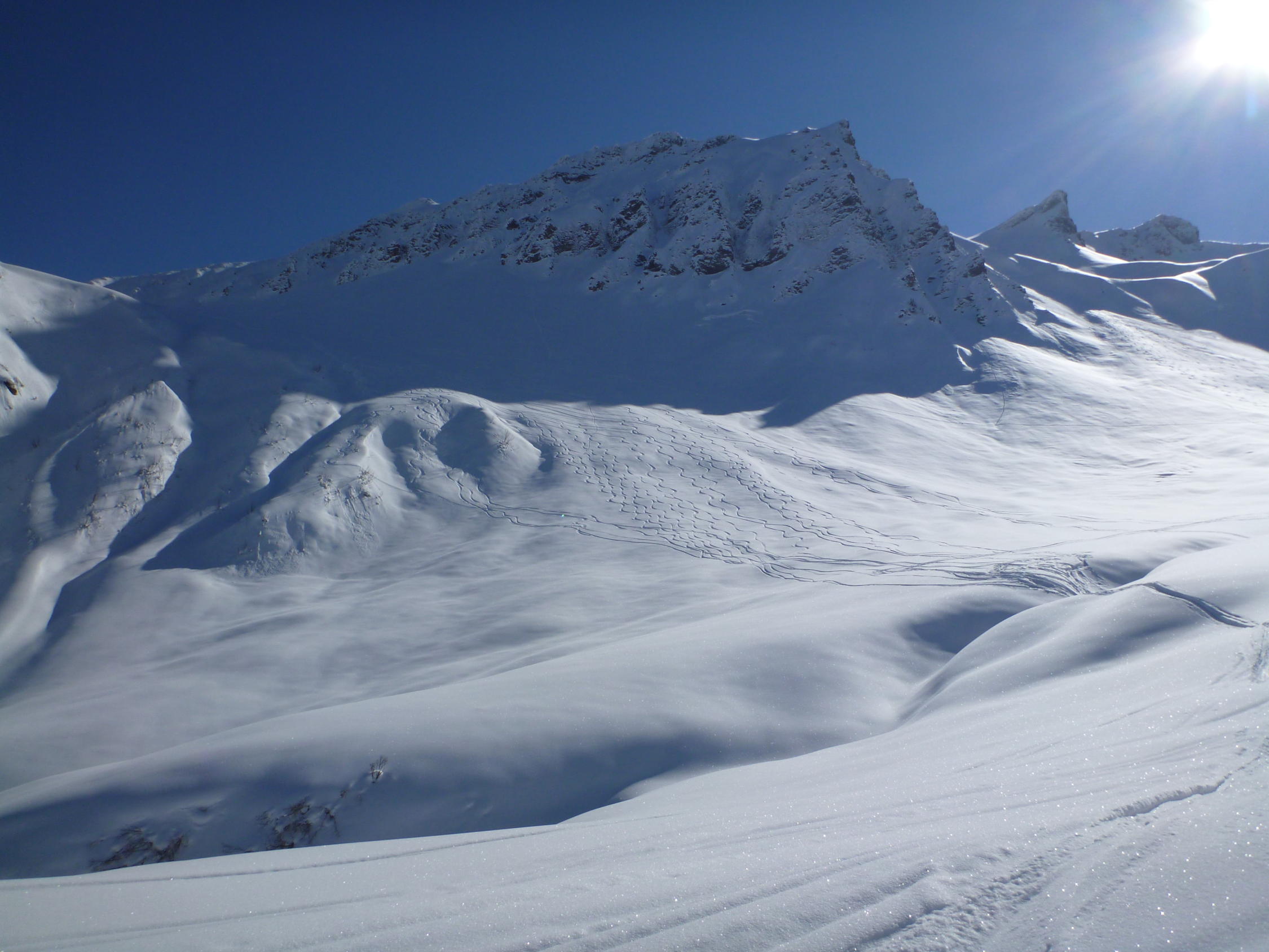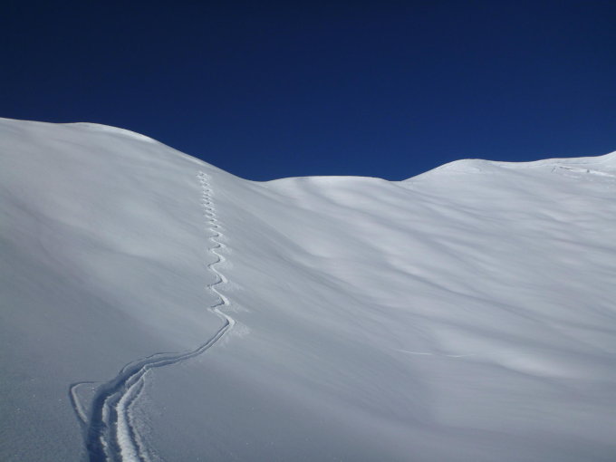 Einfach perfekter Pulver vom allerfeinsten. Erste Abfahrt vom Stelli war schon perfekt, diese wurde aber von den Verhältnissen vom Höchstelli bis Alp Falsch definitiv übertrumpft - viel Powder und sehr luftig. Auch die Abfahrt vom Wannenspitz zurück an den Ausgangspunkt war noch recht gut, auch wenn im unteren Teil schon ziehmlich verfahren.