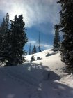 In der Abfahrt noch viel Pulverschnee angetroffen, trotz schon vielen Abfahrtsspuren.