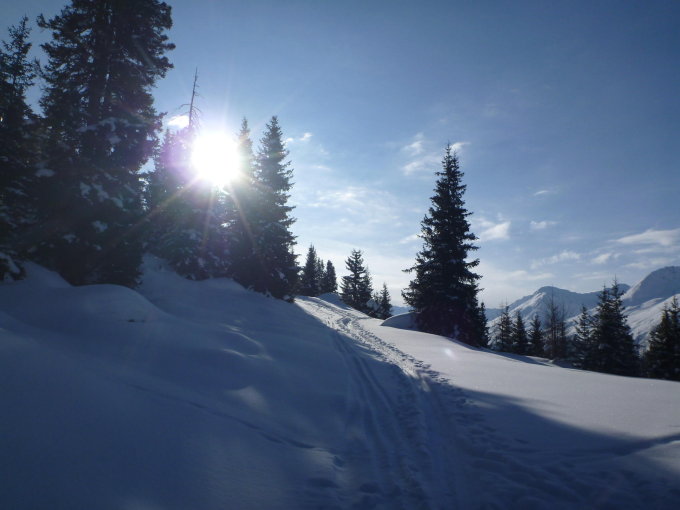 Abfahrt ins Dischmatal war an diesem WE nicht empfehlenswert, da Langlauf-Weltcup angesagt war - Tourengänger waren somit auf der Loipe nicht so gefragt... Direkte Abfahrt Richtung Pischaparkplatz wurde mehrfach gemacht.