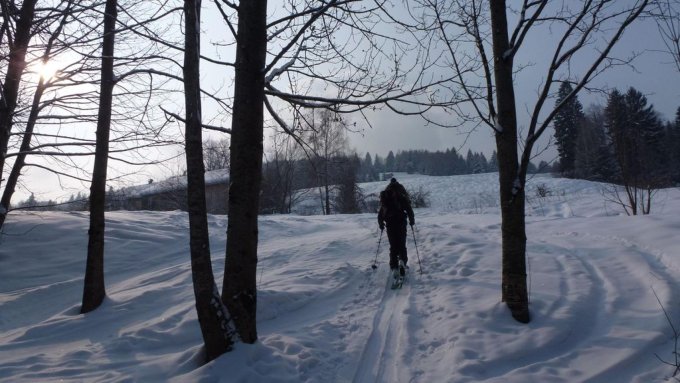 Wir hofften auf einen sonnigen Tourentag, nachdem sich das Wetter entgegen der Prognose doch recht freundlich zeigte. Das währte aber nur kurz und den ganzen Aufstieg entlang war es verhangen und bitter kalt (zum Glück kein Wind). Das hinderte uns jedoch nicht, bei der Bazoraalpe den obligatorischen "Z'nüne" einzunehmen. Damit taten wir richtig, denn es folgte nun der sehr steile und spitzkehrenreiche Anstieg zum Gipfel. Den erreichten wir genau zu dem Zeitpunkt, als sich die Wolken wieder etwas lichteten und wir in der Sonne Gipfelrast halten konnten. Der gegenüberliegende Berg machte uns noch an und so beschlossen wir, diesen kurzum noch anzuhängen. Die Schier deponierten wird in der Senke zwischen den zwei Gipfeln. Die Wühlerei durch den tiefen Schnee über steile Flanken hat sich jedenfalls gelohnt.