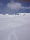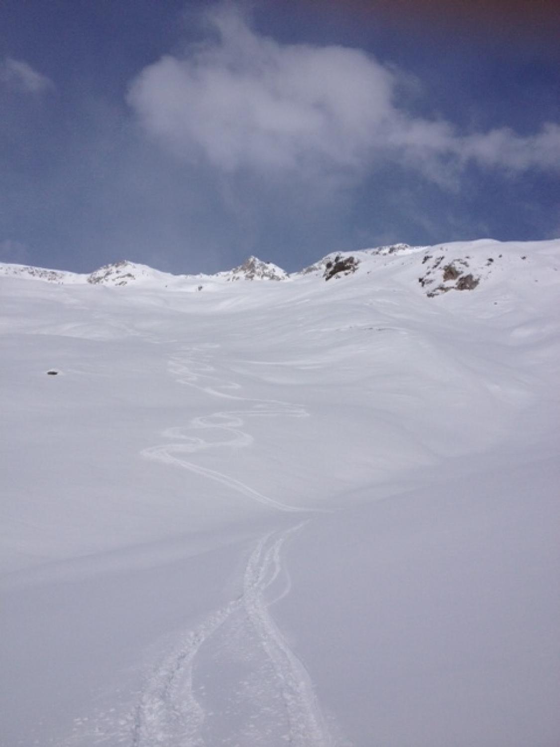 Ich wurde von einem Abgang von Schneestaub auf der Höhe von cirka 2'035 bei den Koorindaten E675124/N153003 aus den Felsen Südöstlich überrascht; harmlos aber trotzdem nicht lustig.