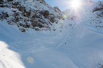 Feinster Pulver. Zt aber Felsen drunter. Der Durchschlupf vereist.