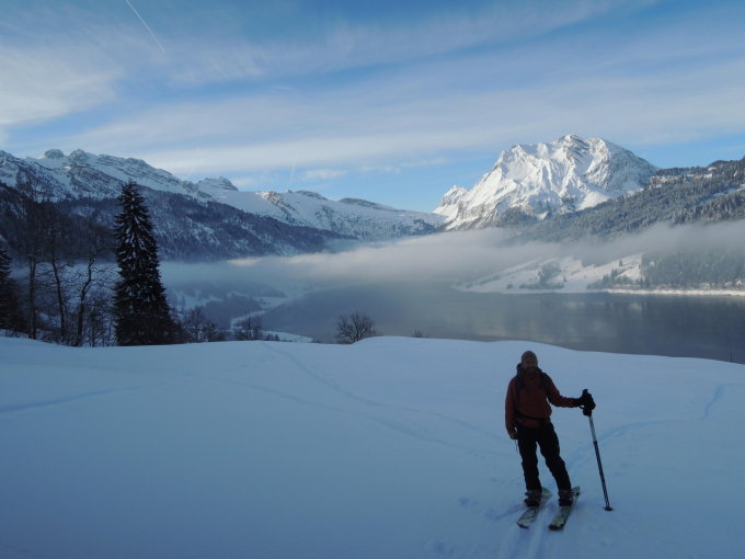 Abfahrt in den Chälen phantastisch! Ganz luftiger Powder, viel Platz und grosse Freuden.