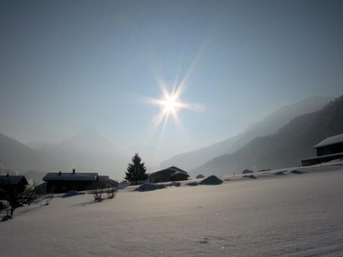 Optimales Tourenwetter. Zwar im Tal etwas dunstig, aber sonst wolkenlos und in der Höhe relativ mild. 5 cm Pulverschneeauflage auf dem sonst planierten Weg bis zur Abzweigung Godlachen. Dann im offenen Gelände auf vorhandener Spur bis zum Gipfel.
