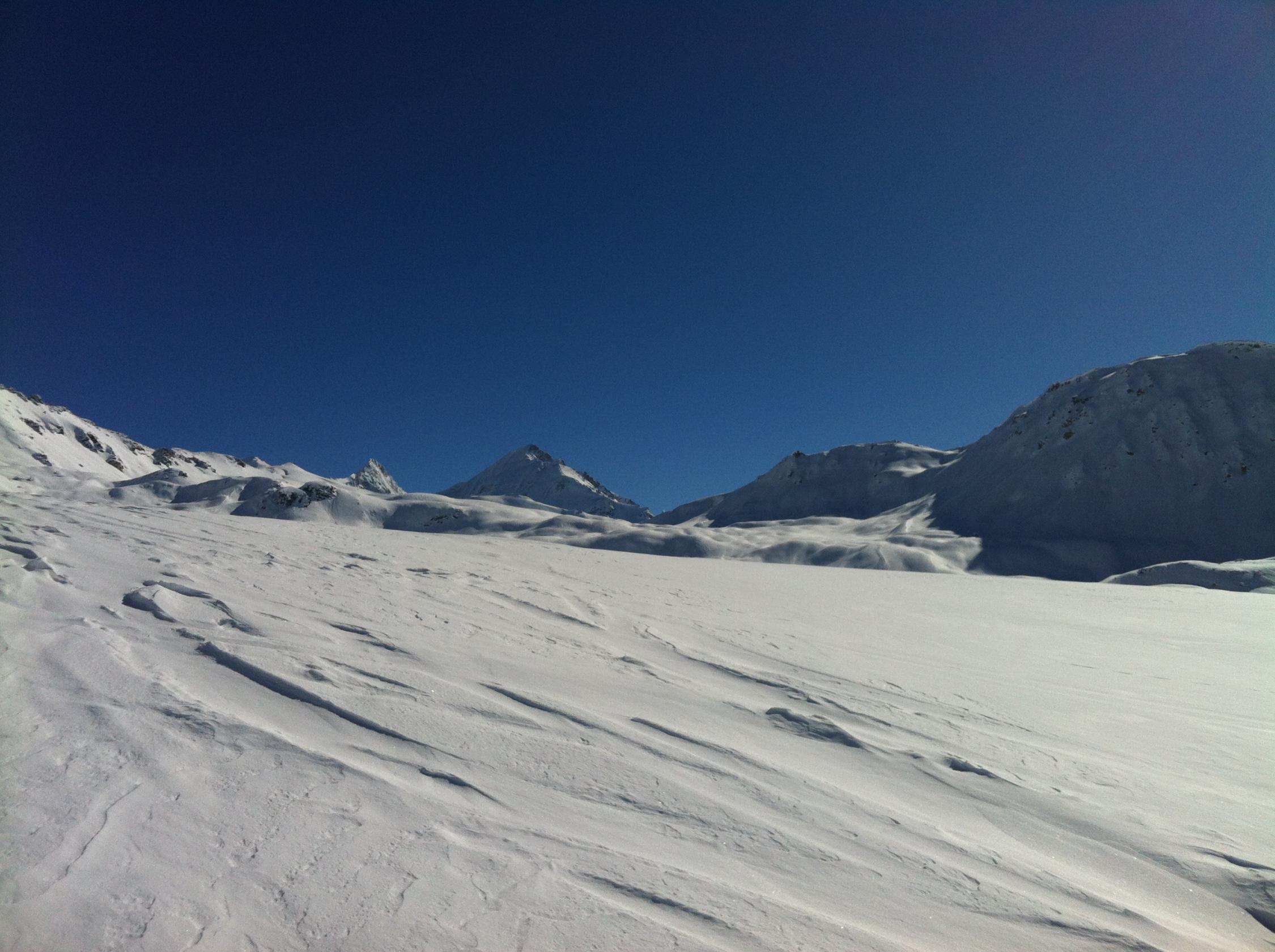 Es ist jedoch auch lohnenswert durch die Mulden parallel der Aufstiegsspur abzufahren und beim Lac du Touno 2659 müM noch auf den Le Touno 3018 müM aufzusteigen.