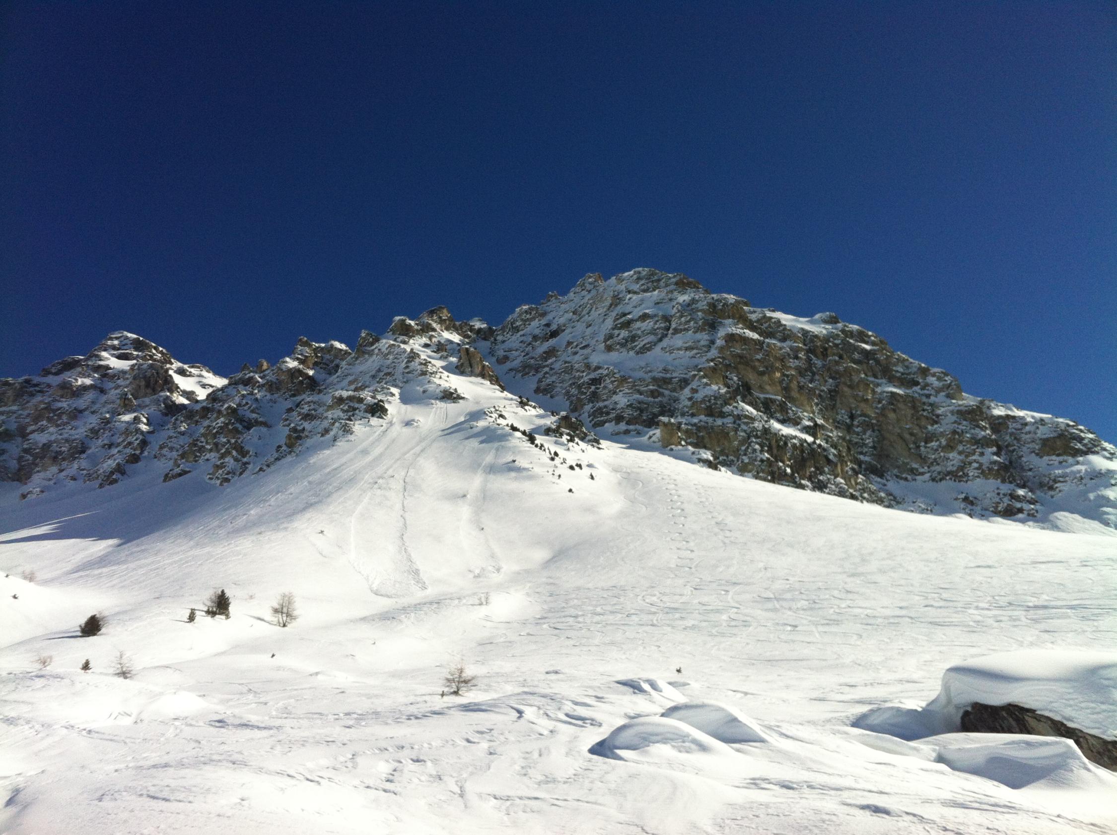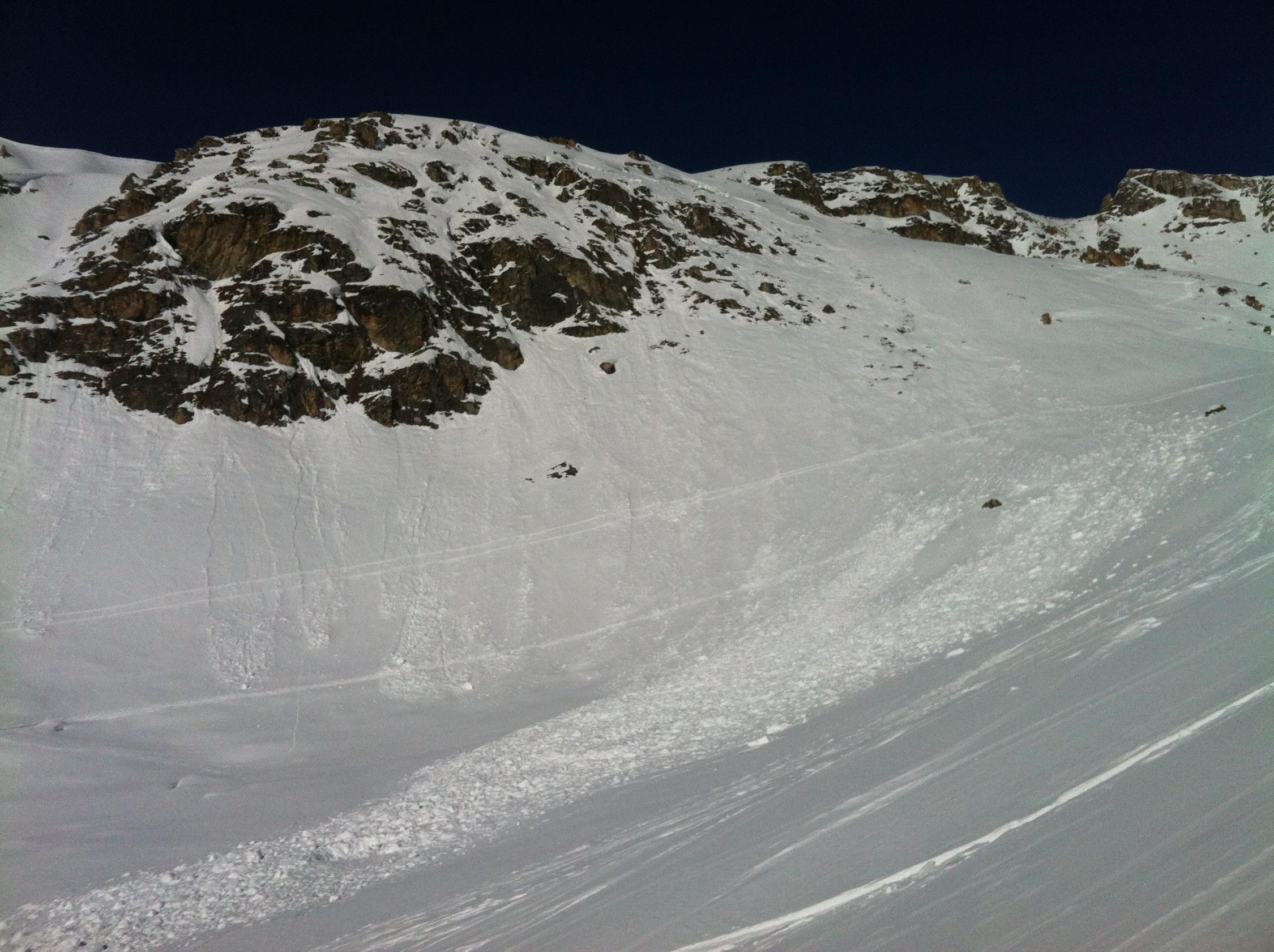 Mittelgrosses Schneebrett nördlich vom Lac du Touno bei welchem letzte Woche 2 Tourenfahrer verschüttet wurden und einer leider starb.