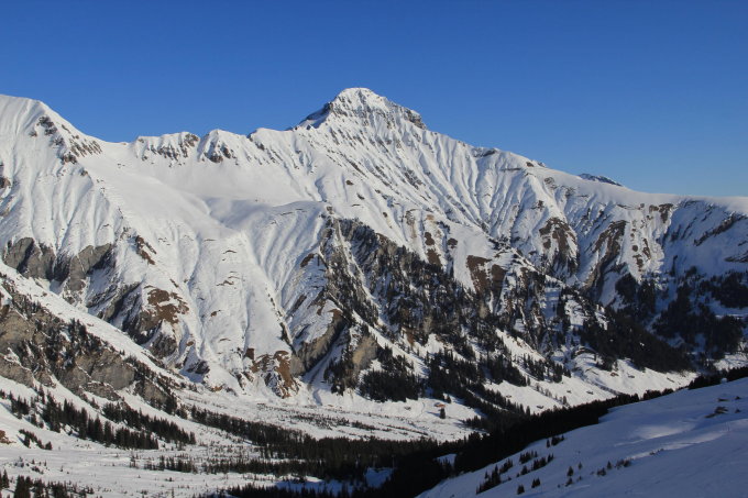 Die Nordflanke... WAHNSINN!!! First Line im Biregrabe oberer Teil (aber HALLO! ;)), einfach direkt reingestochen (ein paar harmlose scratches), sicher 45 Grad, Powder vom Feinsten, so ists leicht --- dann nach rechts rausgequert und beim nächstbesten Rücken First Line -mässig runtergepudert... Jupppiii, genau DAS ist Superpowder :))