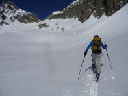Erste spontane Rutsche in den Südhängen, auf der Route selbst nichts