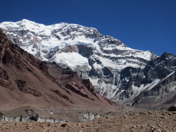 Normalroute ueber Confluencia - Plaza de Mulas (Basecamp). Von dort ueber Camp Alaska nach Nido de Condores. Von dort aus direkt zum Gipfel.