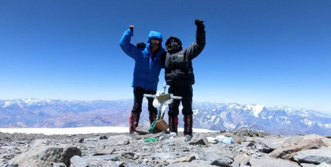 Es herrschten in der Zeit als wir am Berg waren, also in der Vorsaison (Ende Nov, Anfang Dez) relativ schlechte Windbedingungen mit Sturm bis 160 km/h bei Temperaturen bis -25 Grad C. Ab 50-60 km/h und kalten Temp. wird die Traverse oberhalb Portezuela del Viento und der weitere Auf- und Abstieg sehr gefährlich. Auch erschweren die starken Winde die Atmung beim Aufstieg erheblich. Deshalb würde ich auch bei schönstem Wetter und gemeldeten Windstärken über 60 km/h einen Aufstieg zum Gipfel nicht versuchen. Wir konnten am 08.12.2012 ein Schönwetterfenster mit wenig Wind nutzen und standen dann gegen 11:45 Uhr bei schönstem Wetter auf dem Gipfel. Dabei sind wir direkt von Nido de Condores (ca. 5500m) gestartet und waren in ca. 7,5 Std. am Gipfel. Aufgrund des starken Windes war die Vorsaison 2012 für die Bergsteiger nicht sehr erfolgreich verlaufen und lt. Auskunft der Ranger im Park erreichten nur ca. 10% der Bergsteiger den Gipfel. Darunter war in der Zeit als wir im Park waren keine einzige professionell organisierte Expeditionsgruppe am Gipfel, nur Solo-Gänger wie wir, die flexibel auf das Wetter reagieren konnten und keinen festen Zeitplan hatten!