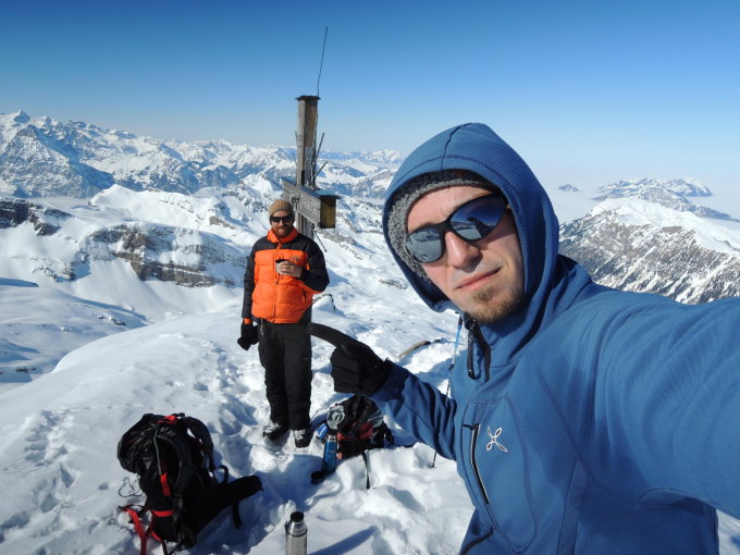 Gipfelaufstieg ab Skidepot problemlos. Steigeisen können psychologisch hilfreich sein (Pickel ist momentan wenig brauchbar). Kurze Kletterstellen sind gut machbar. Das Stahlseil liegt grösstenteils frei und die Kette auch.