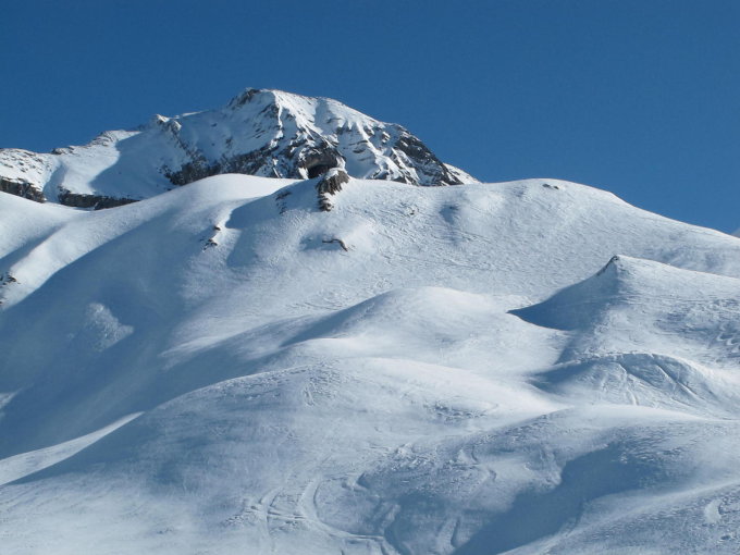An den sonnenabgewandten Hängen noch Pulverschnee.